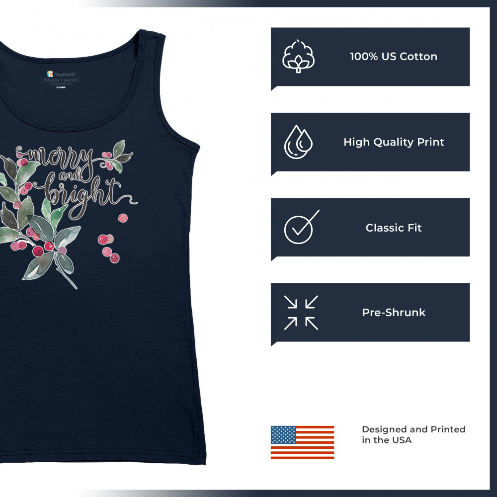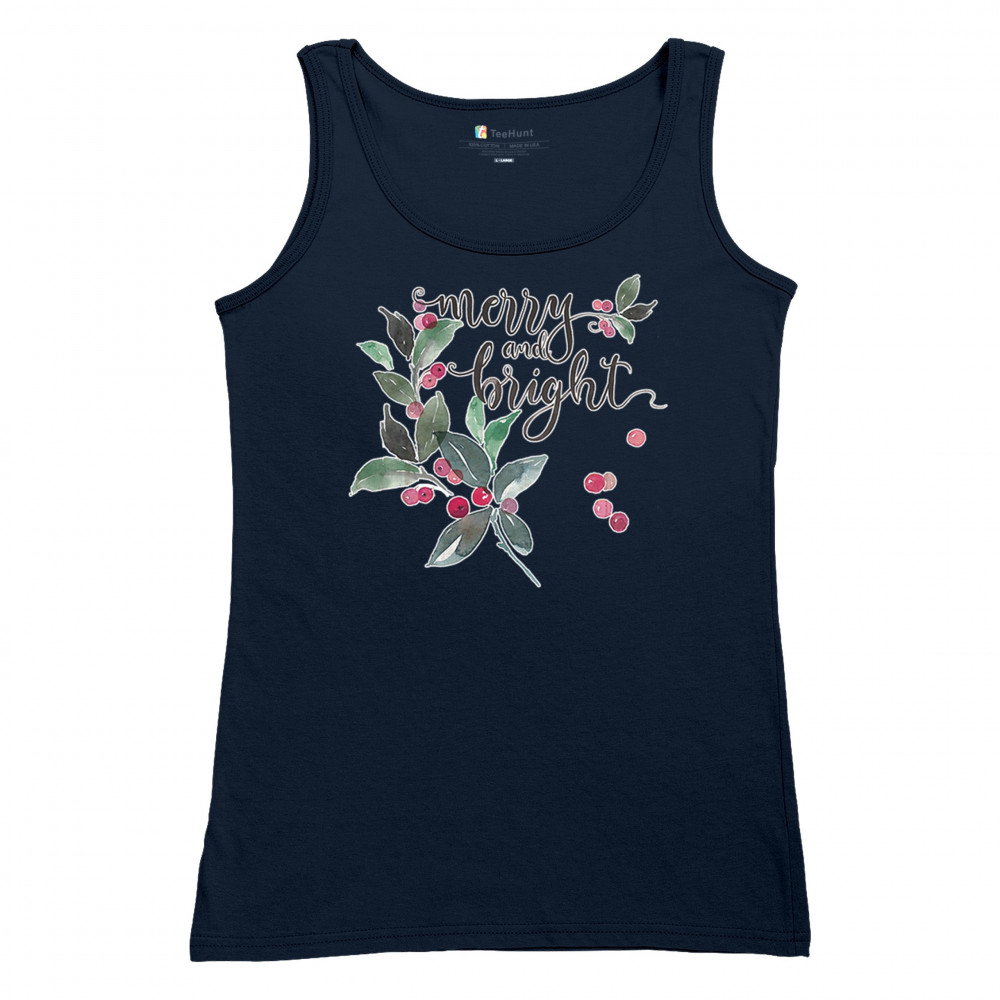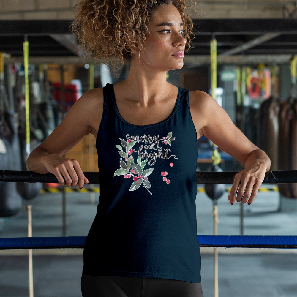 MERRY AND BRIGHT CUTE CHRISTMAS women's tank top jolly santa clause xmas navy blue