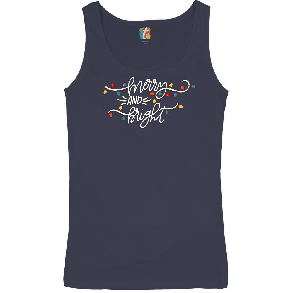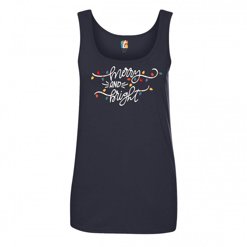 MERRY AND BRIGHT women's tank top christmas eve holiday spirit festive navy blue
