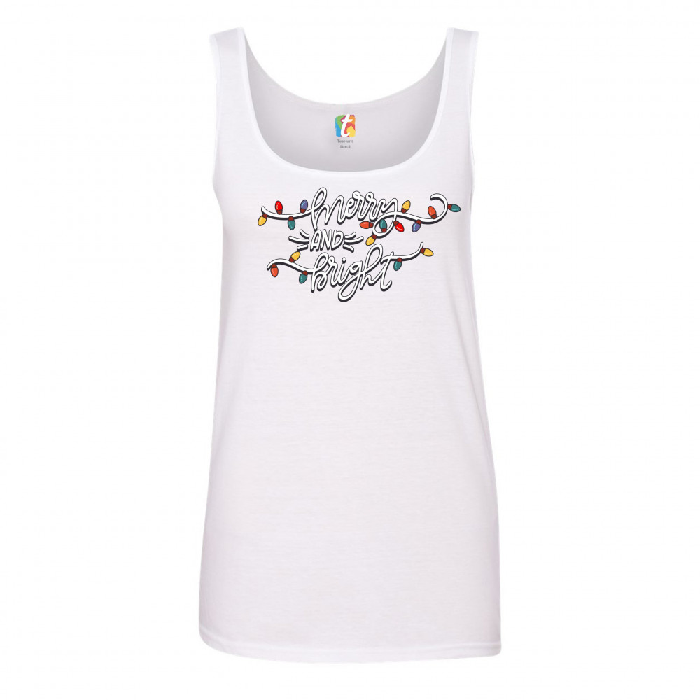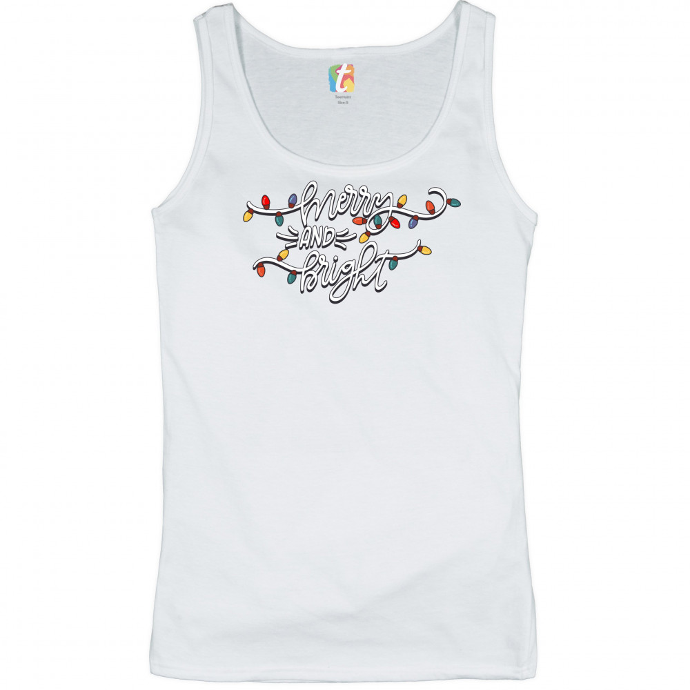 MERRY AND BRIGHT women's tank top christmas eve holiday spirit festive white
