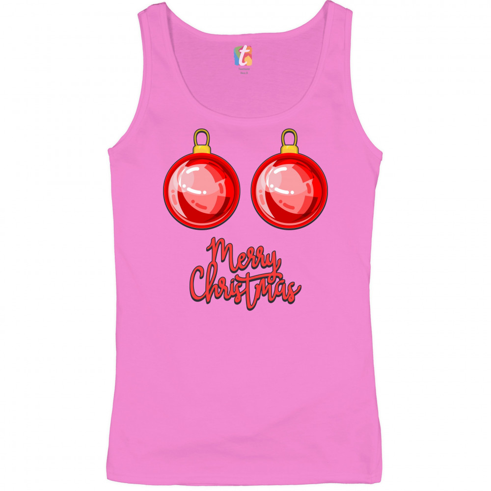MERRY CHRISTMAS BOOBS women's tank top naughty or nice funny xmas tits pink