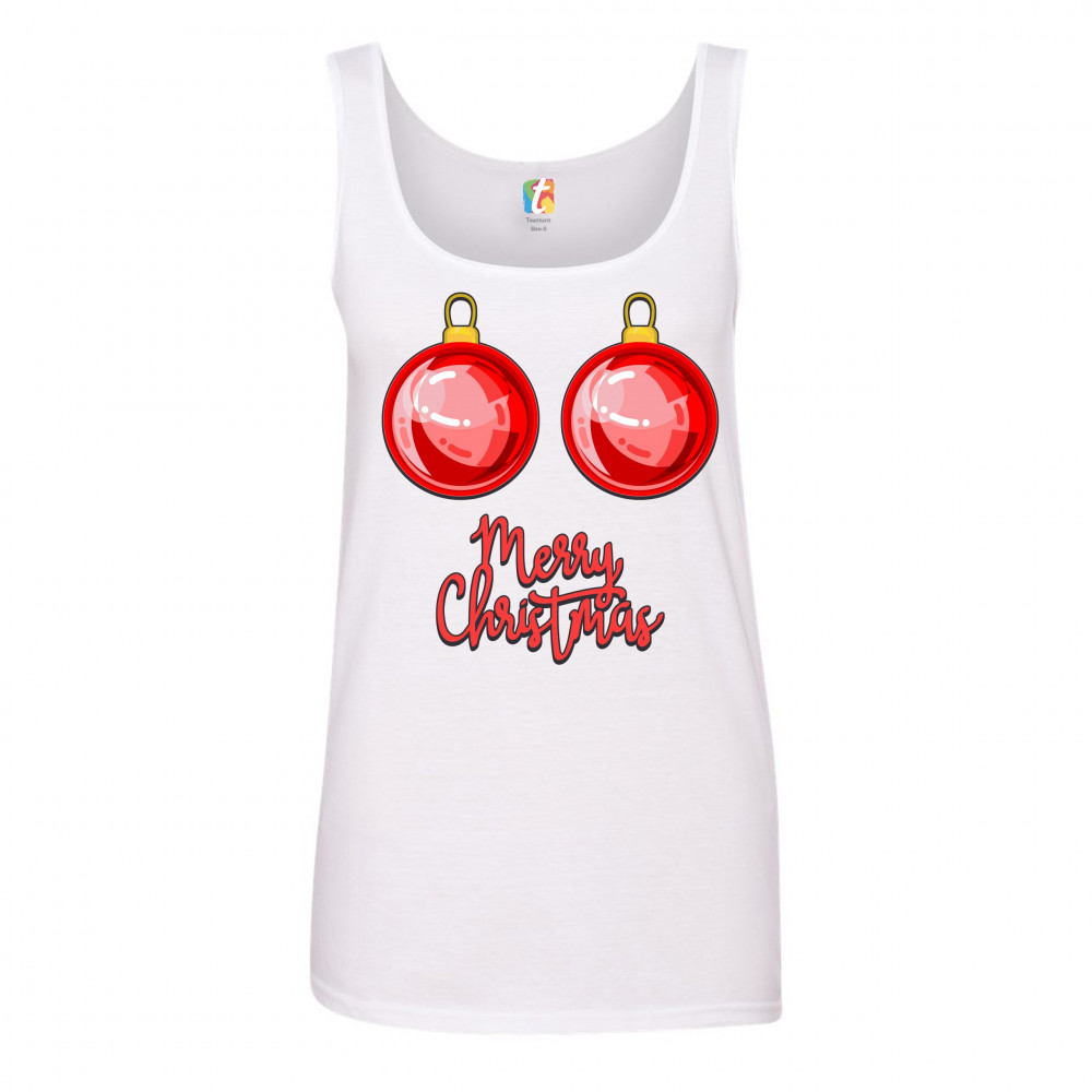 MERRY CHRISTMAS BOOBS women's tank top naughty or nice funny xmas tits white