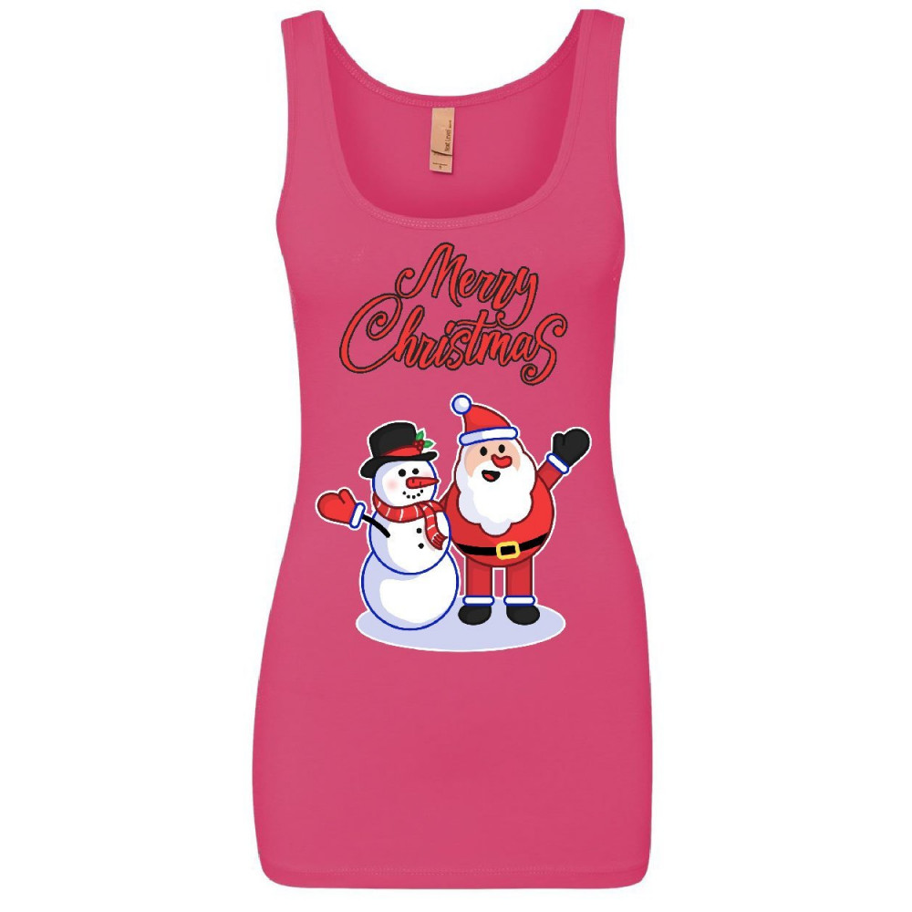 MERRY CHRISTMAS SANTA AND SNOWMAN merry christmas santa snowman hug women's tank top xmas holiday spirit top pink