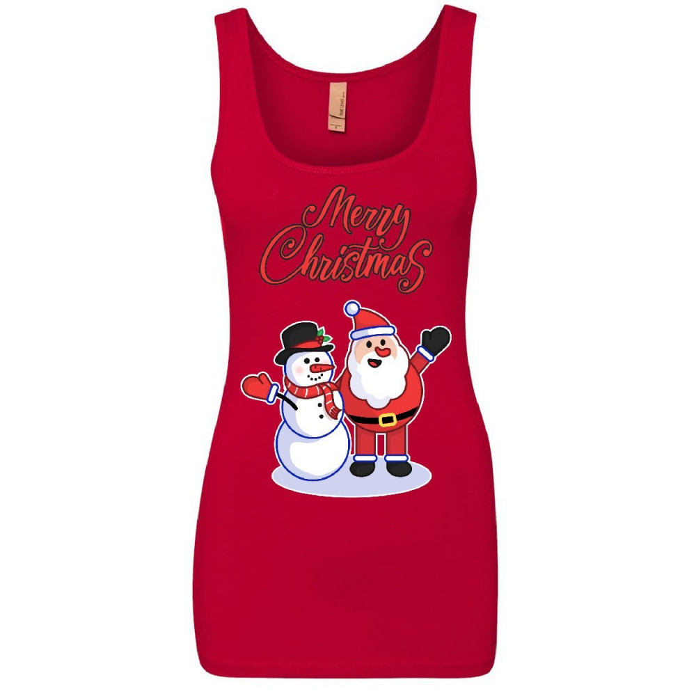 MERRY CHRISTMAS SANTA AND SNOWMAN merry christmas santa snowman hug women's tank top xmas holiday spirit top red