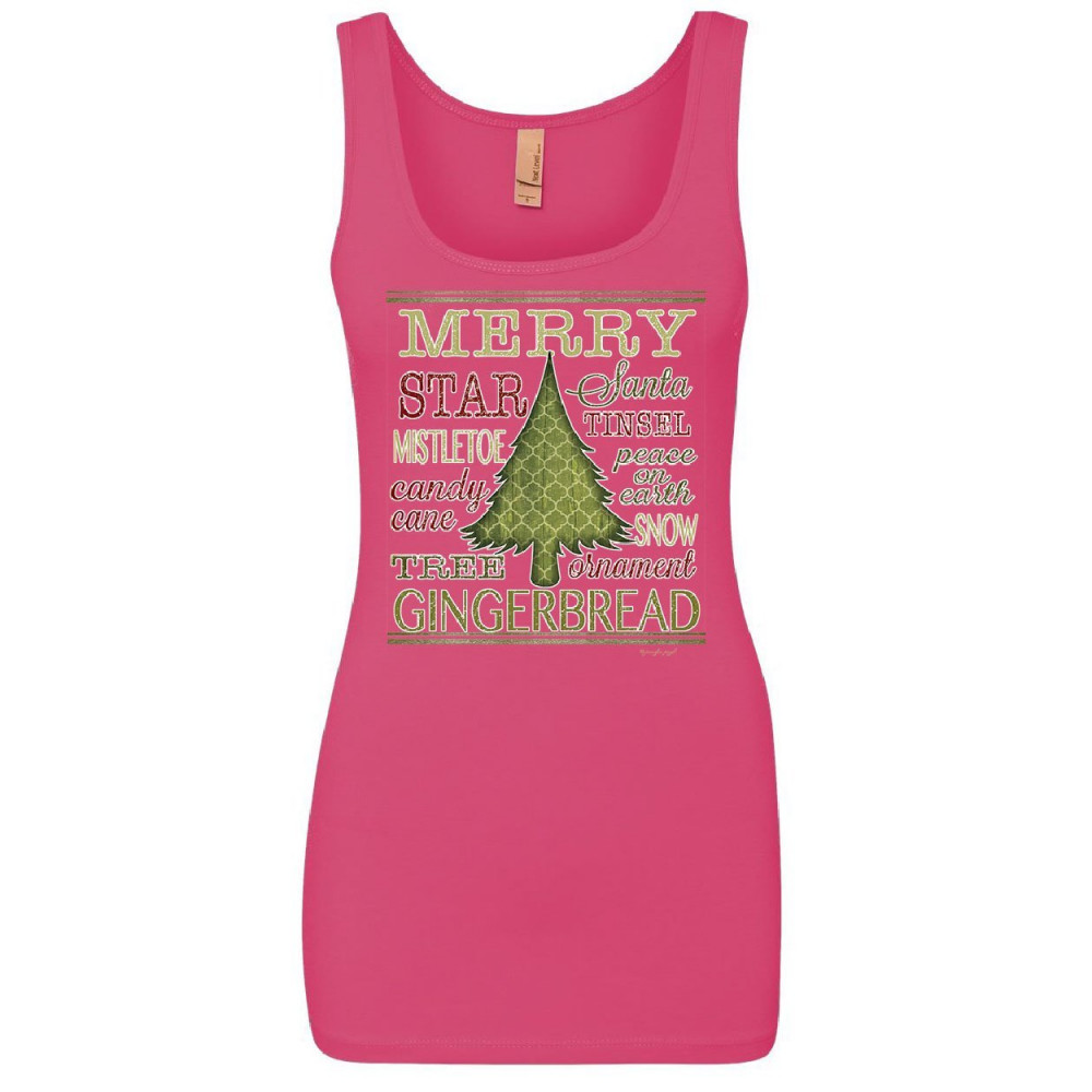 MERRY CHRISTMAS xmas tree women's tank top holiday spirit joy santa snow top pink