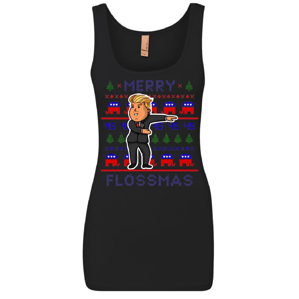 MERRY FLOSSMASS merry flossmas women's tank top christmas xmas ugly sweater trump floss top black