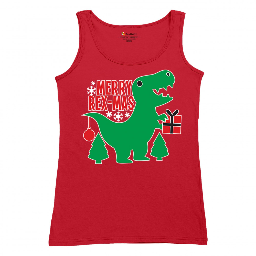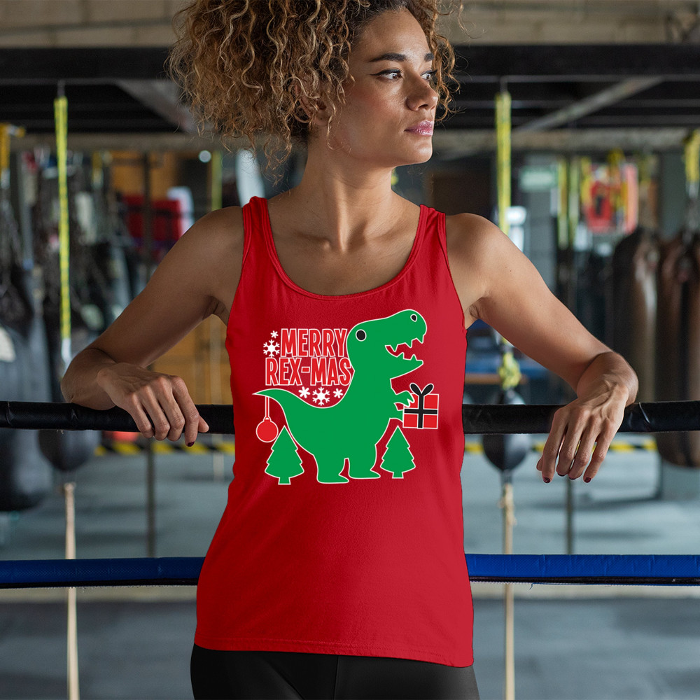 Merry Rex-Mas dinosaur Christmas design with a cute T-Rex, gift, and festive holiday details. Perfect for fun family celebrations and cheerful winter style.