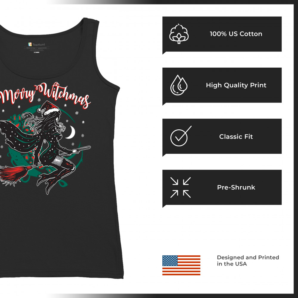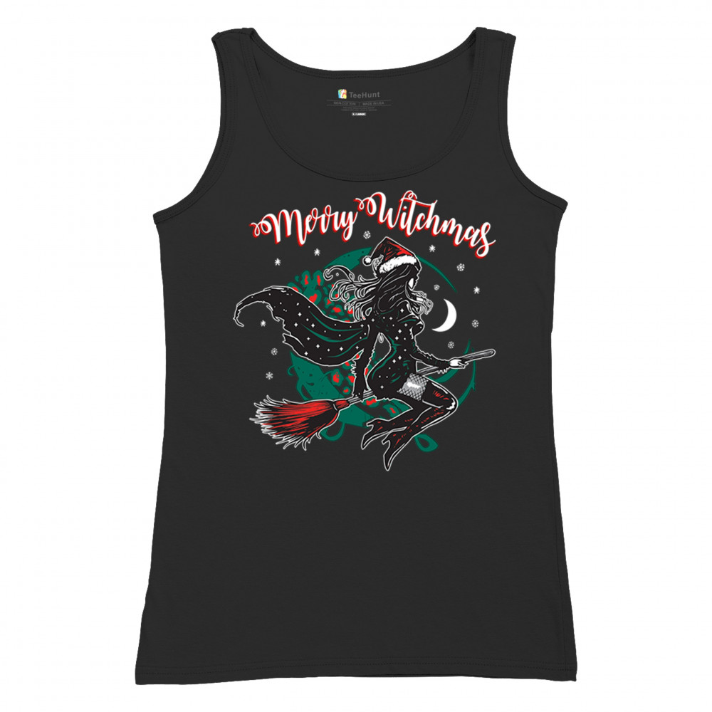 MERRY WITCHMAS women's tank top cute funny christmas witch flying broom xmas black