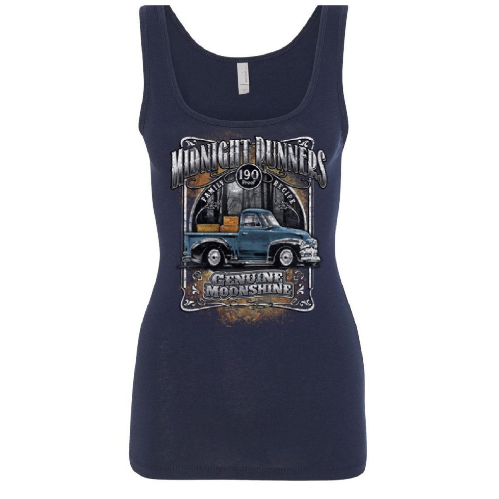 MIDNIGHT RUNNERS women's tank top genuine moonshine drinking whisky booze top navy blue