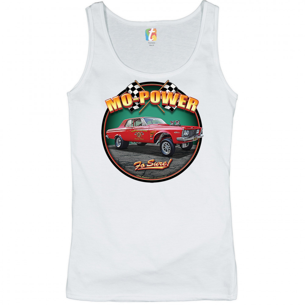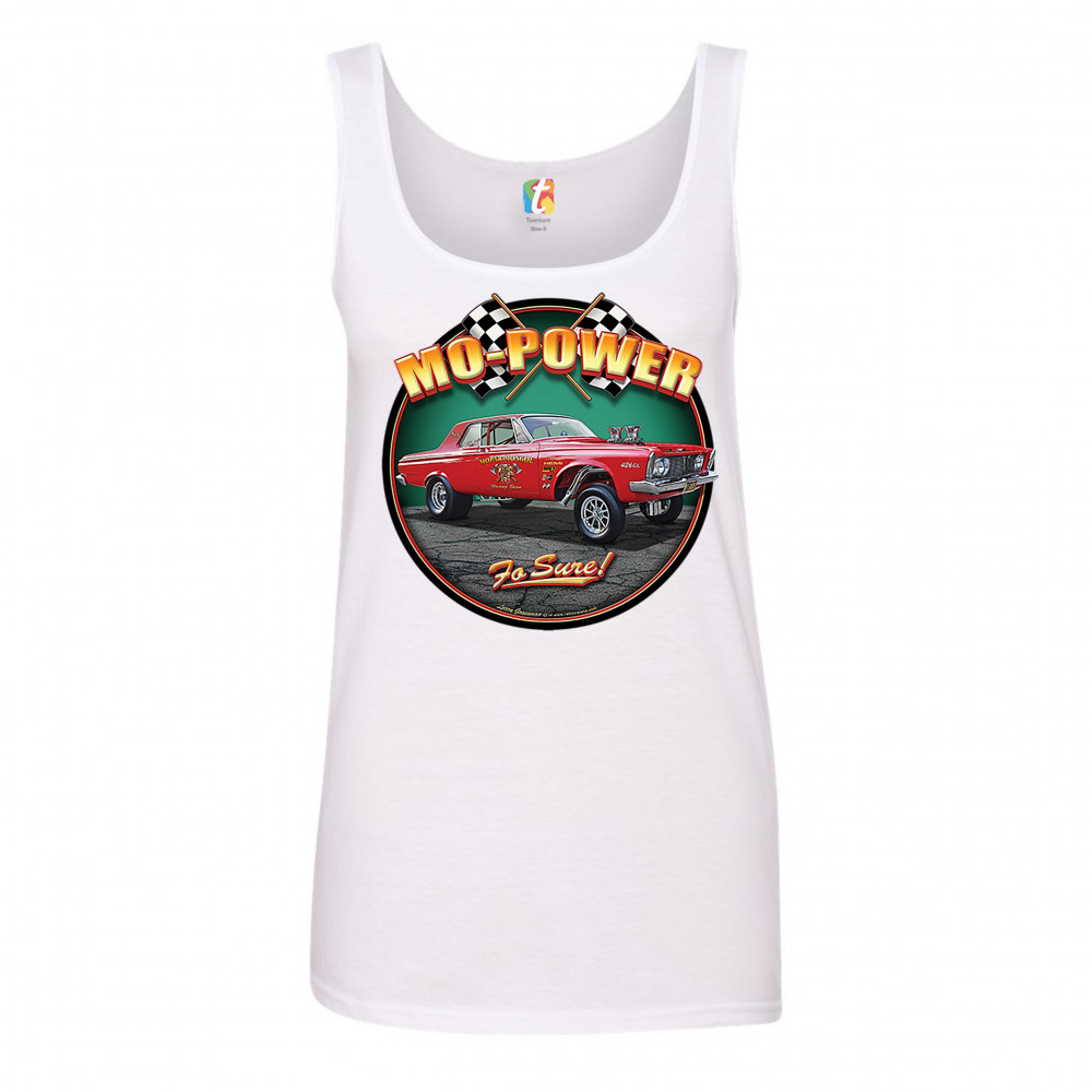 MO-POWER FO SURE! women's tank top american muscle car racing route 66 white