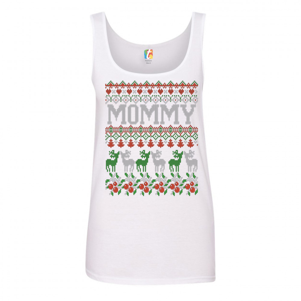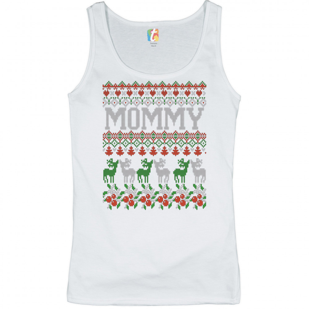 MOMMY women's tank top ugly sweatshirt for mom christmas reindeer xmas white