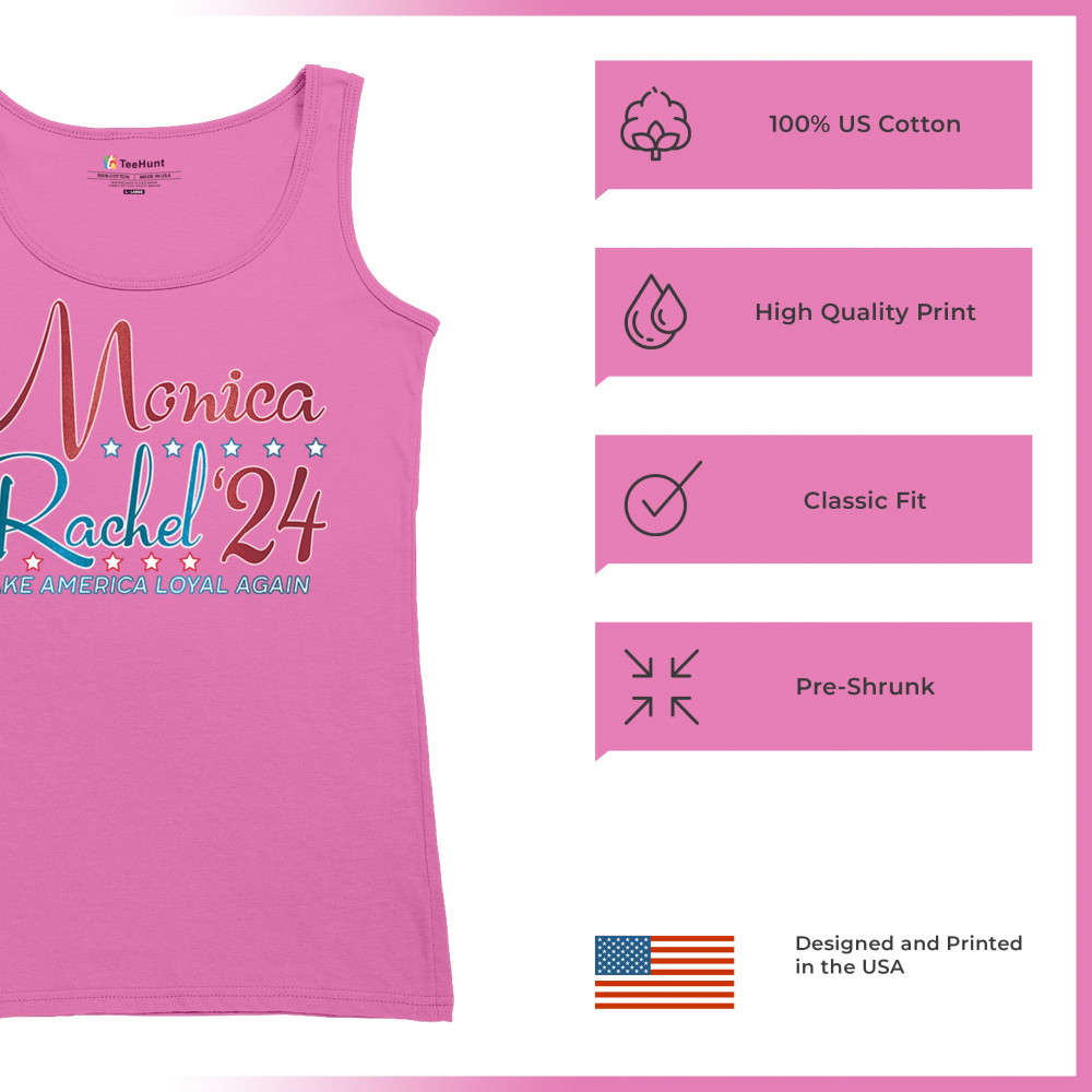 Bring together the nostalgia of "Friends" and the excitement of the upcoming election with this Monica and Rachel '24 design. This shirt is the perfect way to showcase your love for the iconic TV show while keeping the political atmosphere light and fun. Ideal for fans of Rachel and Monica, or anyone who appreciates a good joke, this shirt will have people laughing wherever you go. Wear it proudly and let your style speak volumes without saying a word!