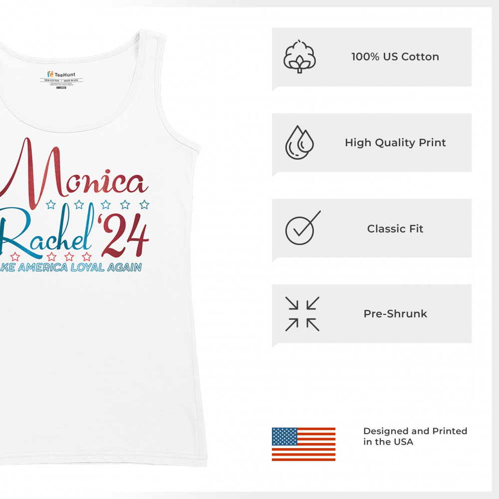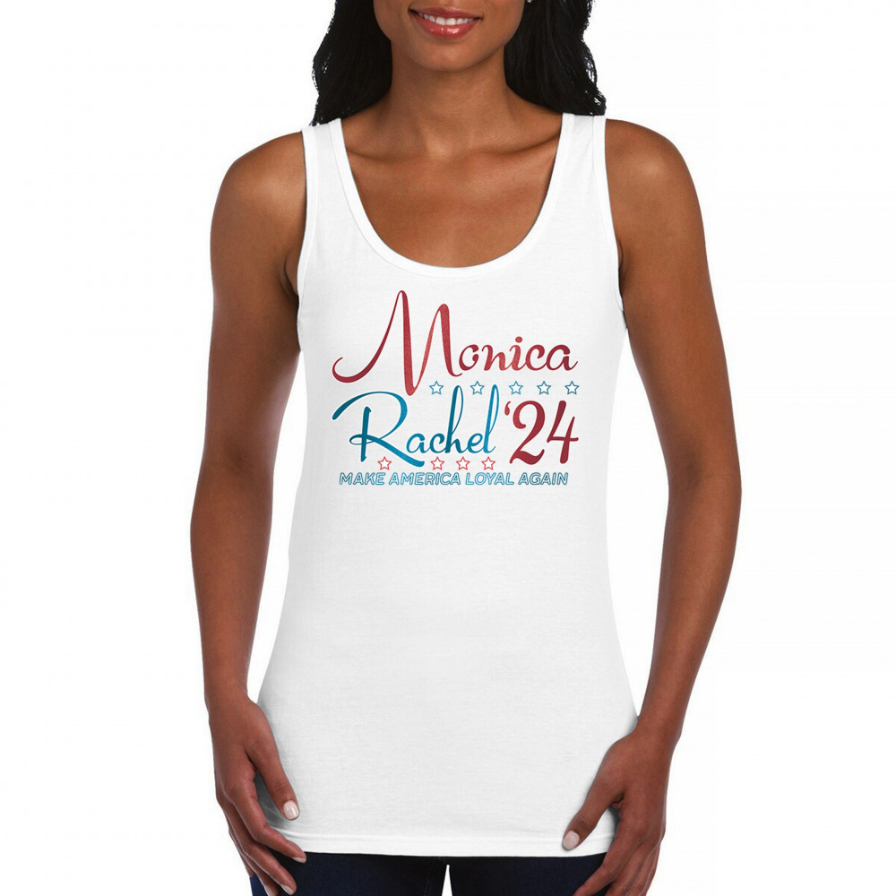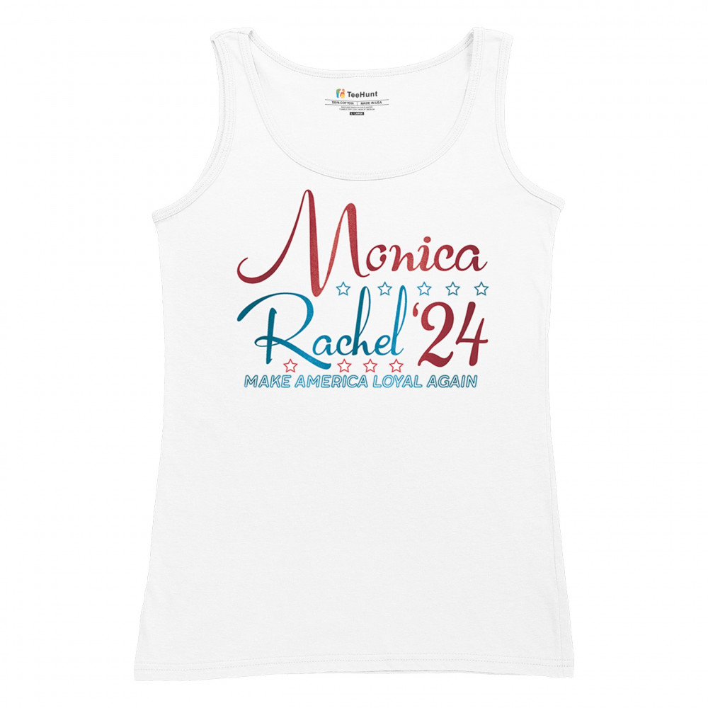 Bring together the nostalgia of "Friends" and the excitement of the upcoming election with this Monica and Rachel '24 design. This shirt is the perfect way to showcase your love for the iconic TV show while keeping the political atmosphere light and fun. Ideal for fans of Rachel and Monica, or anyone who appreciates a good joke, this shirt will have people laughing wherever you go. Wear it proudly and let your style speak volumes without saying a word!