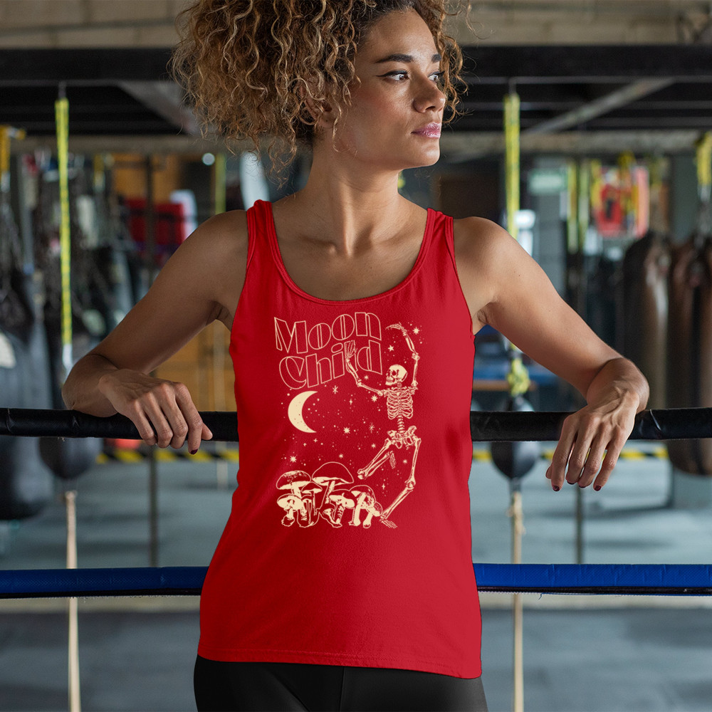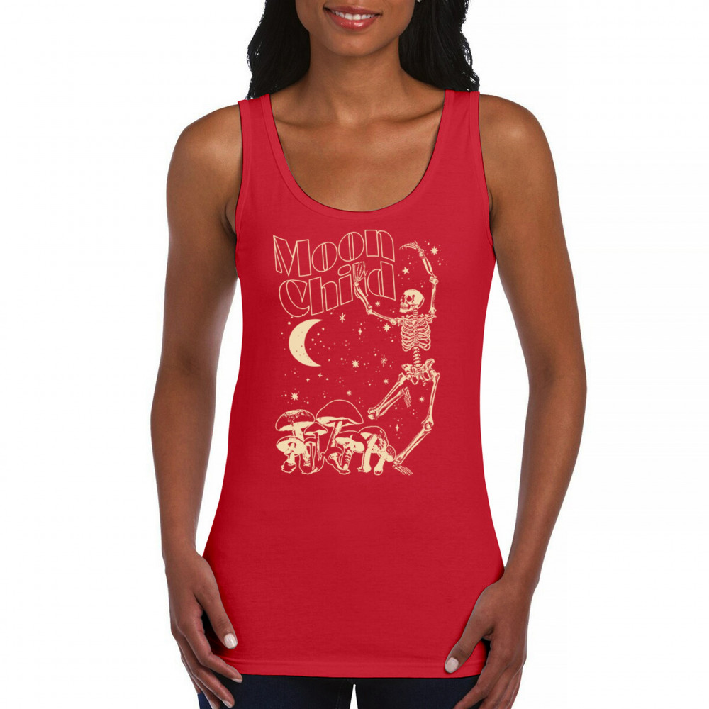 Mystical “Moon Child†design with skeleton, mushrooms, stars, and moon. Retro celestial vibes for dreamers, witches, and free spirits.
