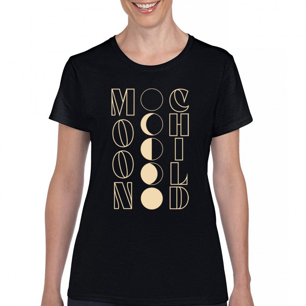 MOON CHILD t-shirt astrology lunar cycle spiritual zodiac sign women's tee black