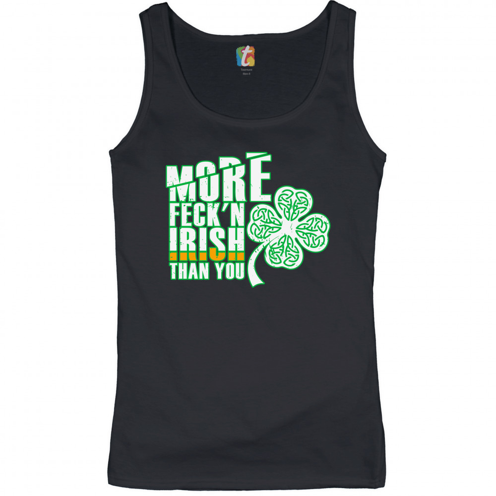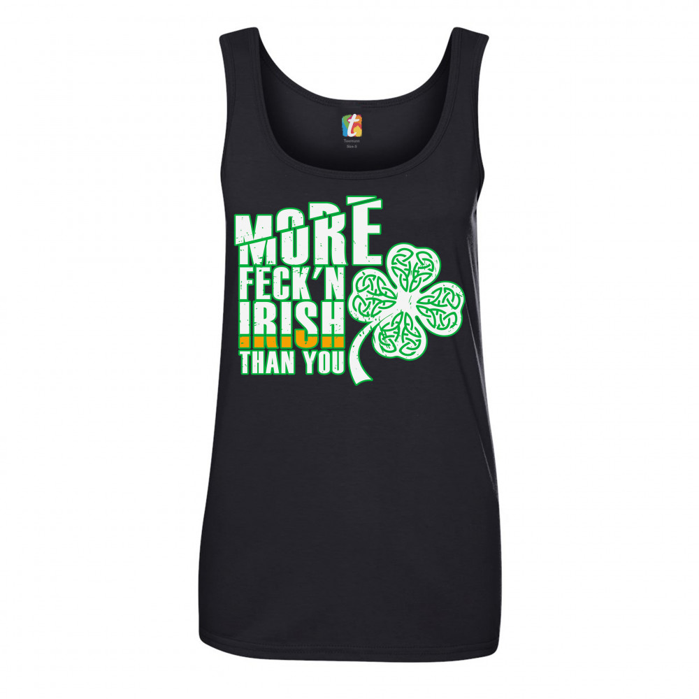 MORE FECK'N IRISH THAN YOU women's tank top st. patrick's day shamrock black