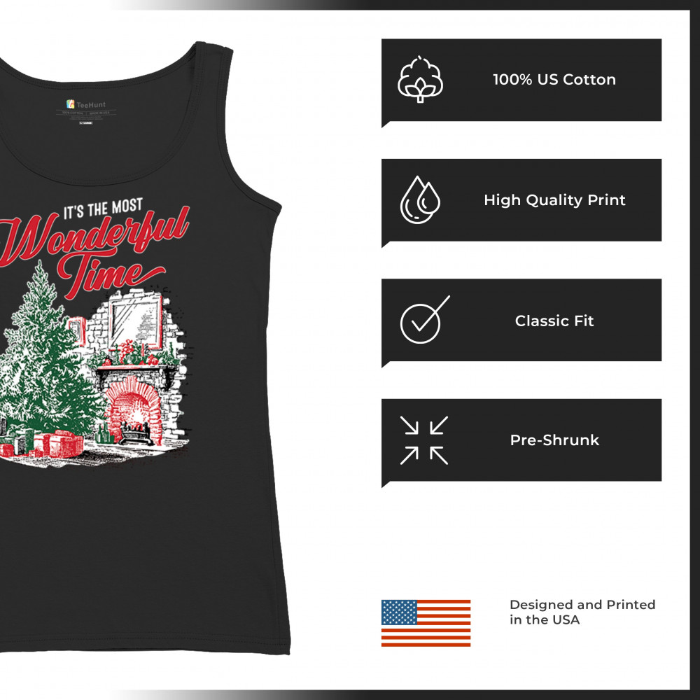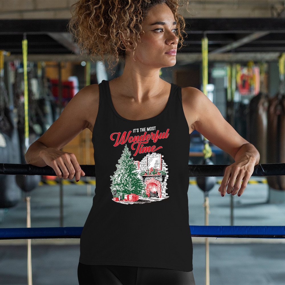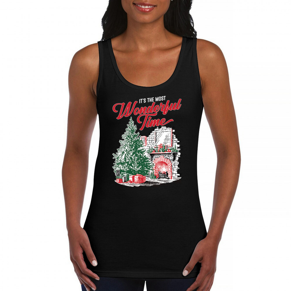 MOST WONDERFUL TIME women's tank top christmas tree merry xmas santa claus black