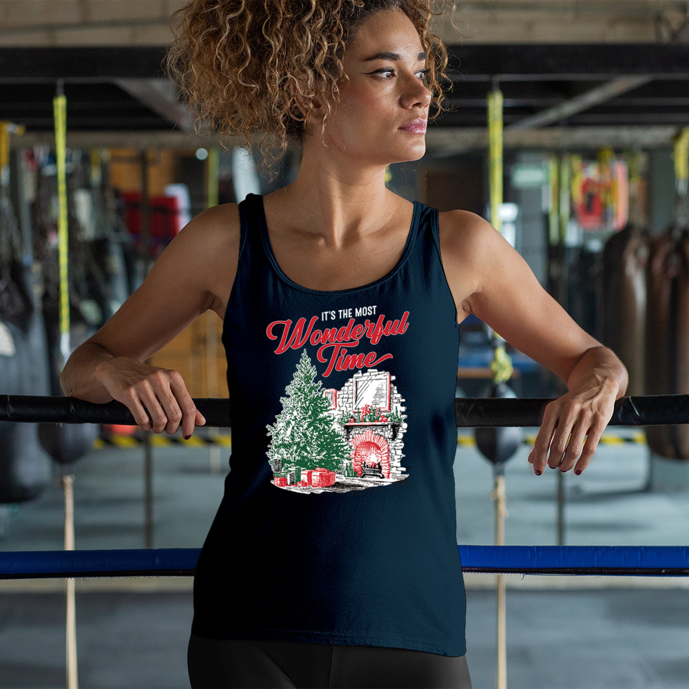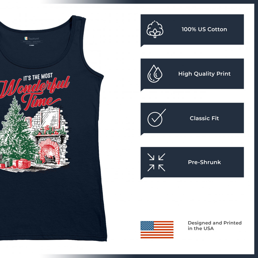 Make your holidays brighter with this “Most Wonderful Time†Christmas design, featuring a glowing fireplace, festive living room, and decorated Christmas tree. This cozy Christmas shirt combines holiday home decor style with classic Merry Xmas charm. Perfect for those who love Santa Claus, Rudolph, reindeer, Let It Snow vibes, and cheerful holiday fashion.