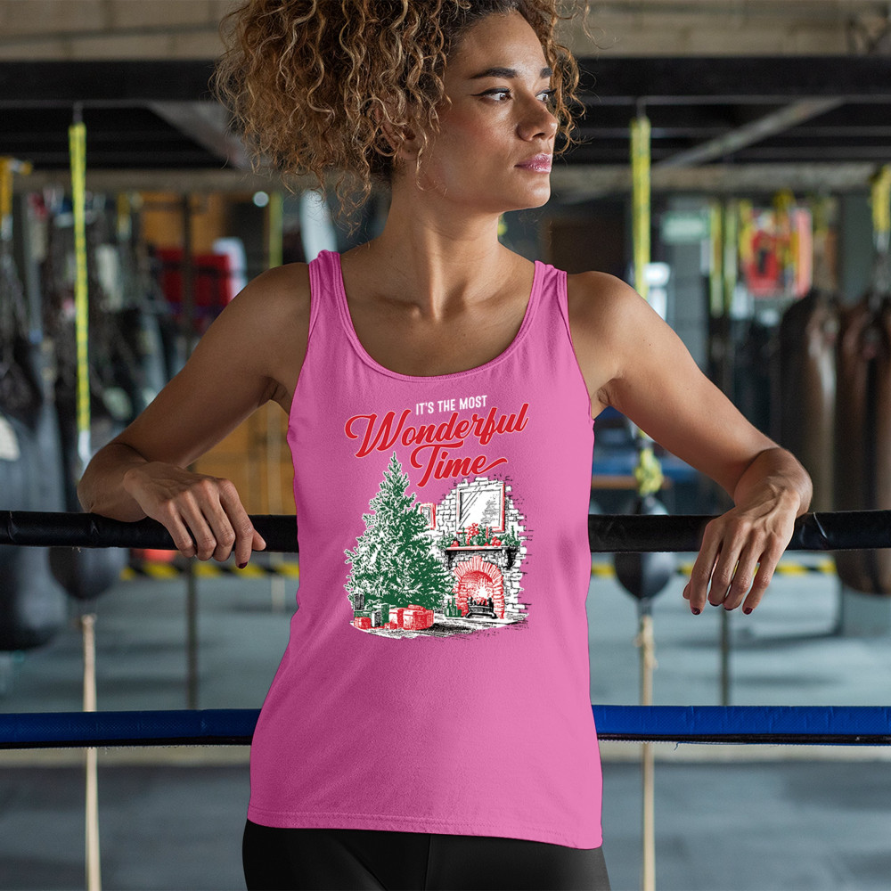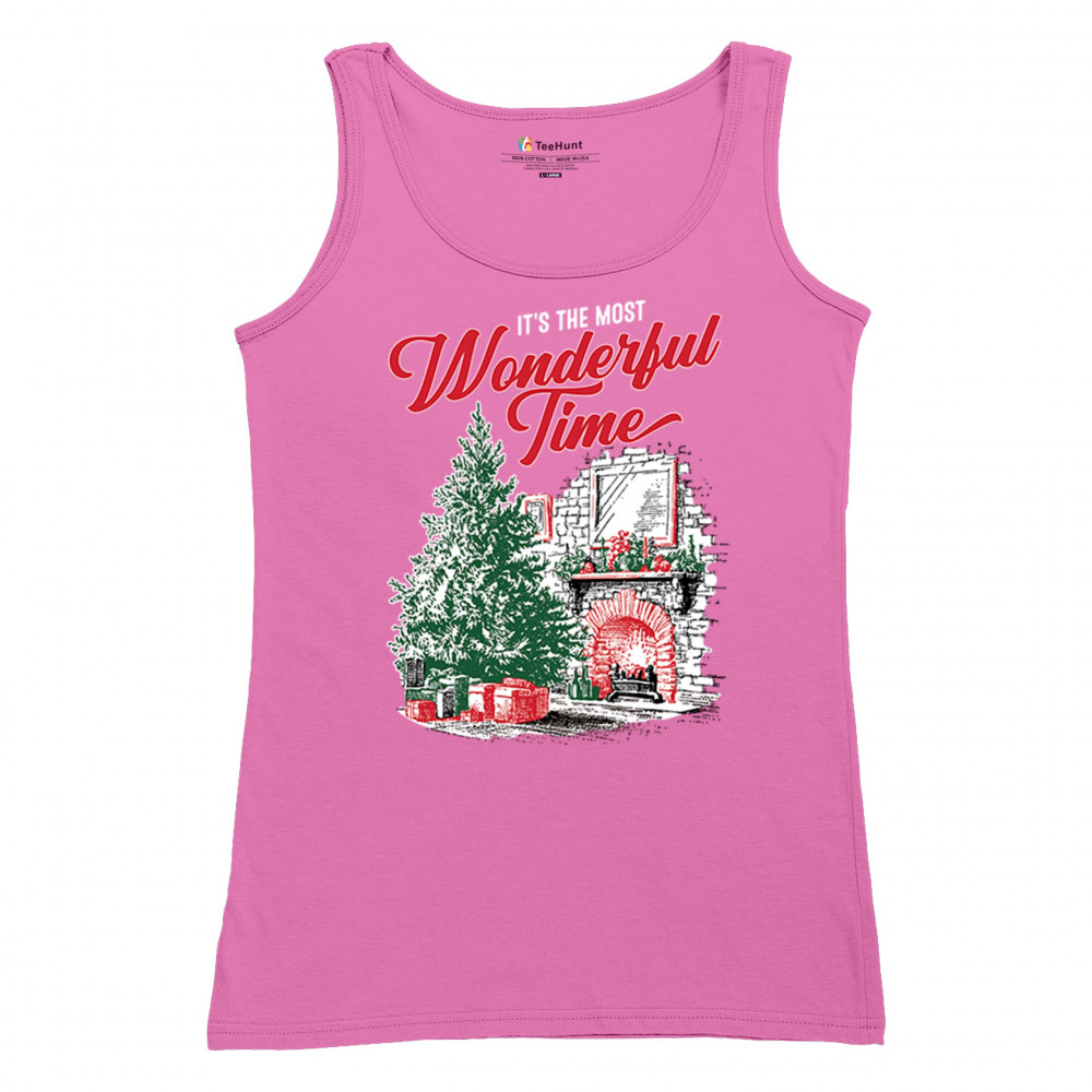 Make your holidays brighter with this “Most Wonderful Time†Christmas design, featuring a glowing fireplace, festive living room, and decorated Christmas tree. This cozy Christmas shirt combines holiday home decor style with classic Merry Xmas charm. Perfect for those who love Santa Claus, Rudolph, reindeer, Let It Snow vibes, and cheerful holiday fashion.