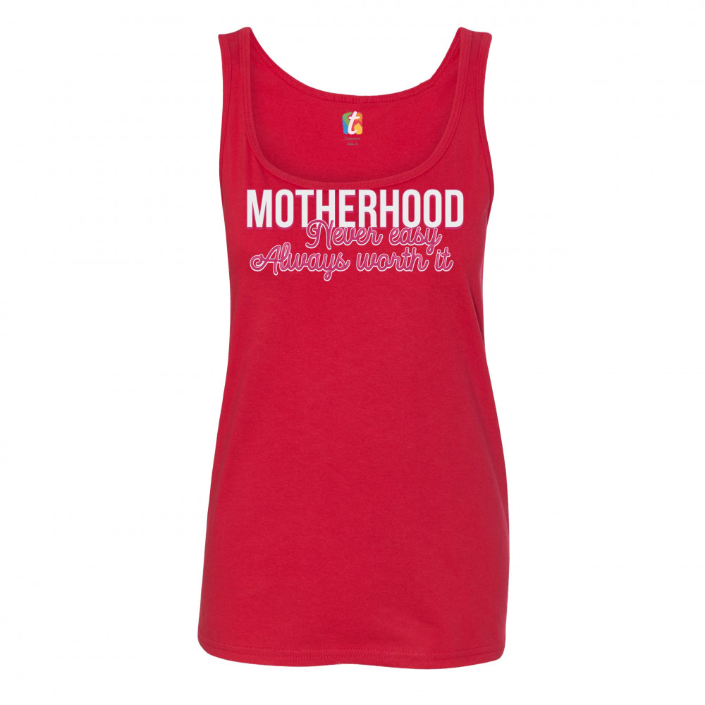 MOTHERHOOD NEVER EASY ALWAYS WORTH IT women's tank top mother's day mom red