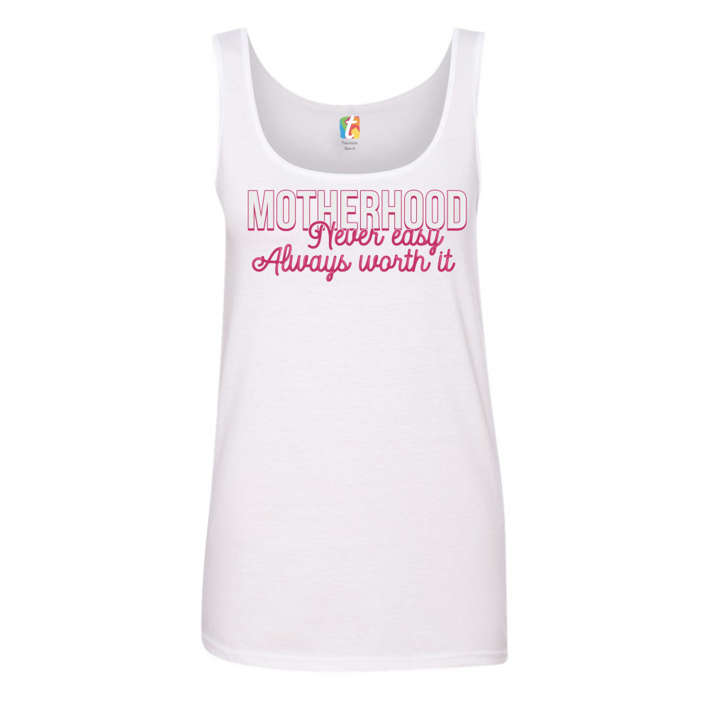 MOTHERHOOD NEVER EASY ALWAYS WORTH IT women's tank top mother's day mom white