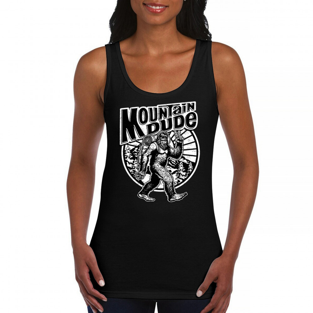 MOUNTAIN DUDE BIGFOOT women's tank top funny sasquatch hide & seek champ black
