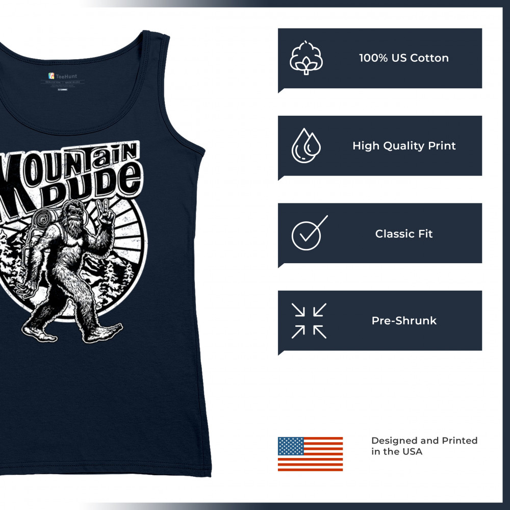 Celebrate outdoor adventures with the "Mountain Dude" design, featuring Sasquatch and mountain scenery. Perfect for hikers, campers, and Bigfoot fans.