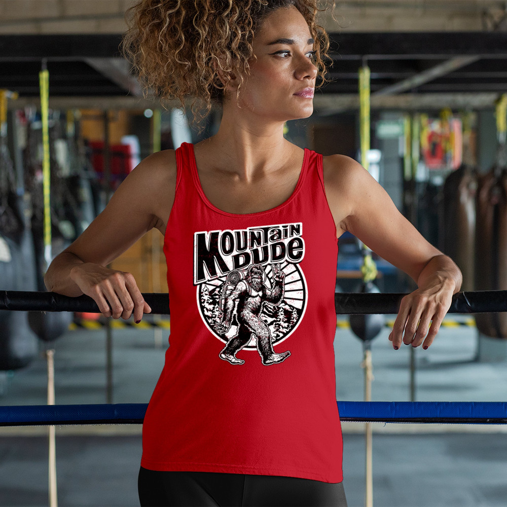 Celebrate outdoor adventures with the "Mountain Dude" design, featuring Sasquatch and mountain scenery. Perfect for hikers, campers, and Bigfoot fans.