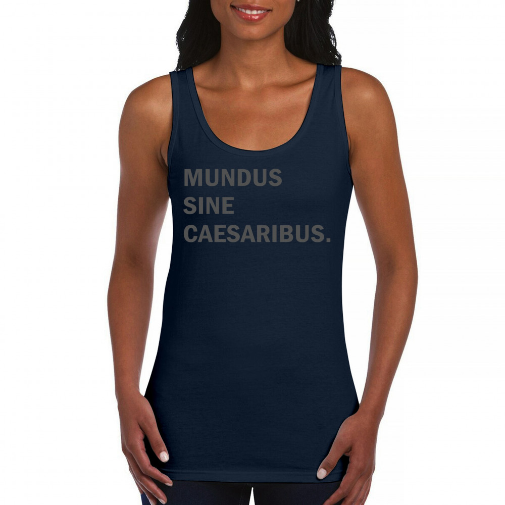 “Mundus Sine Caesaribus†Latin parody tee for rebels, meme lovers, and those tired of tech overlords. Make a witty anti-authority statement.