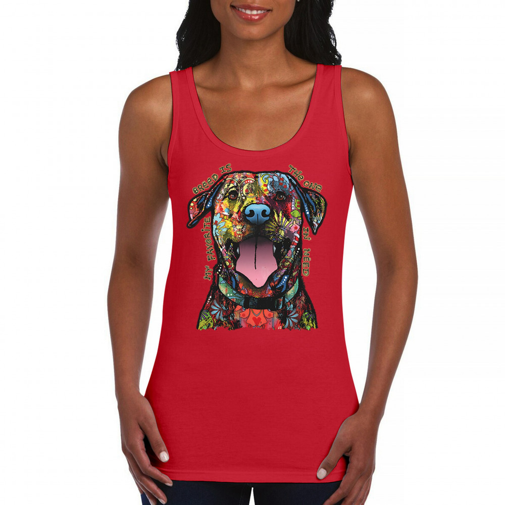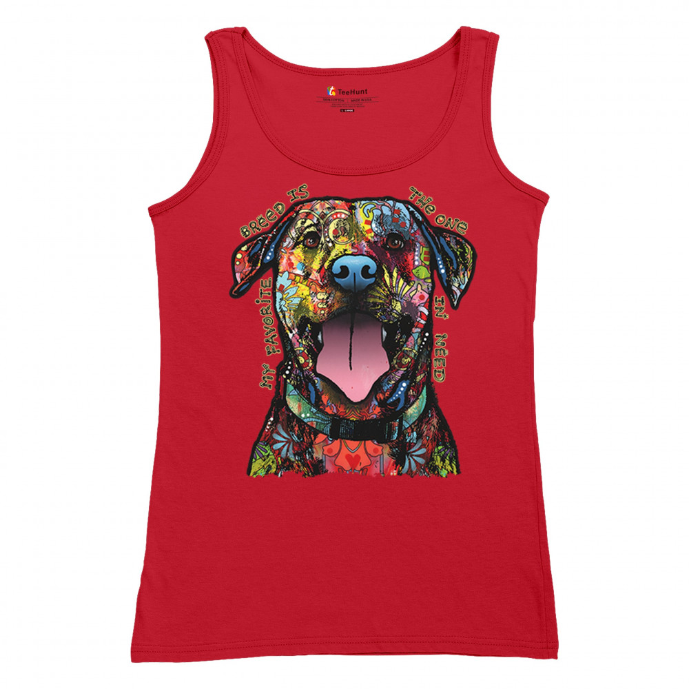 MY FAVORITE BREED IS THE ONE IN NEED women's tank top dean russo neon dog red