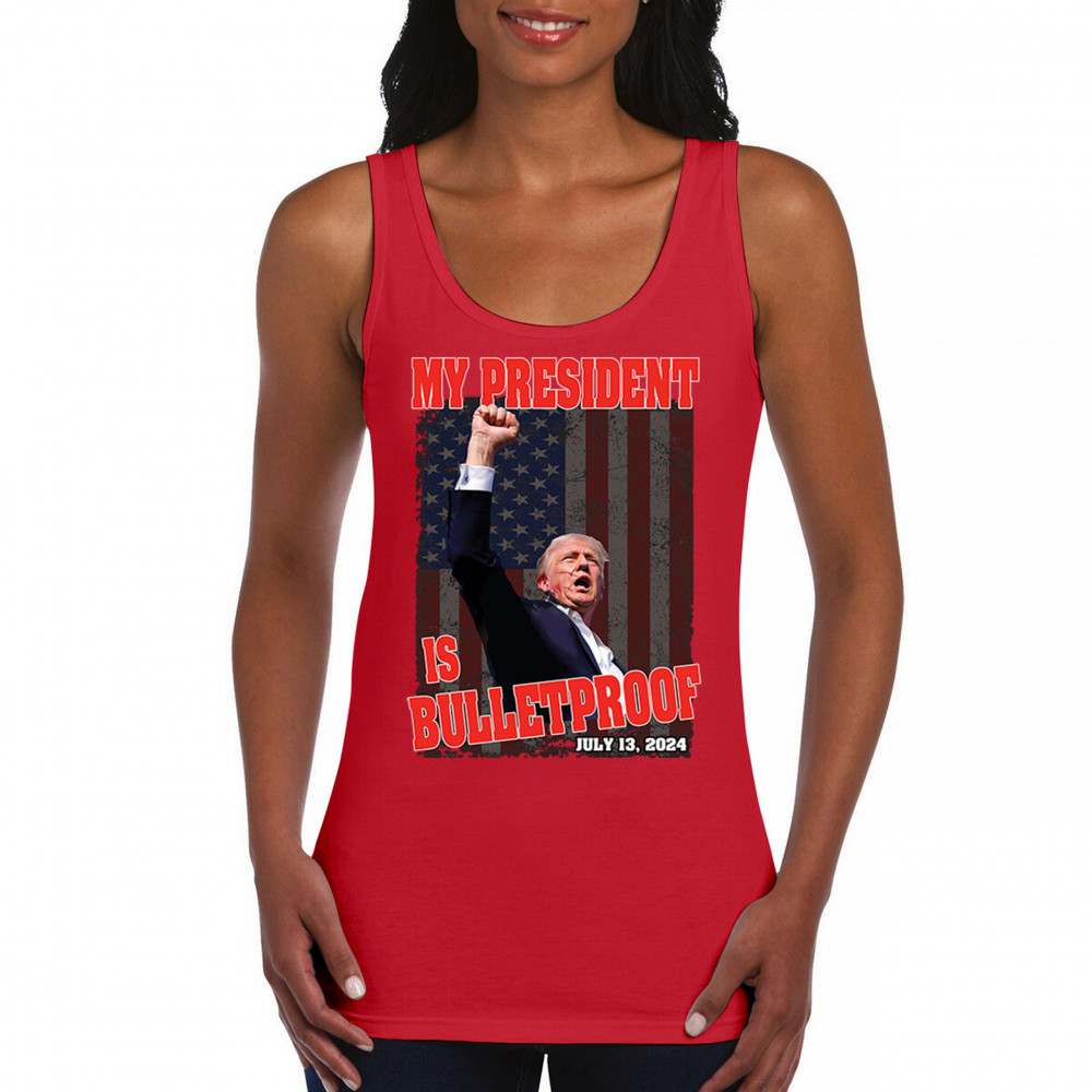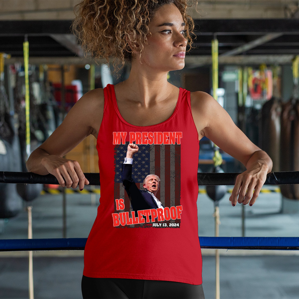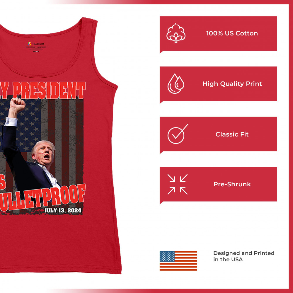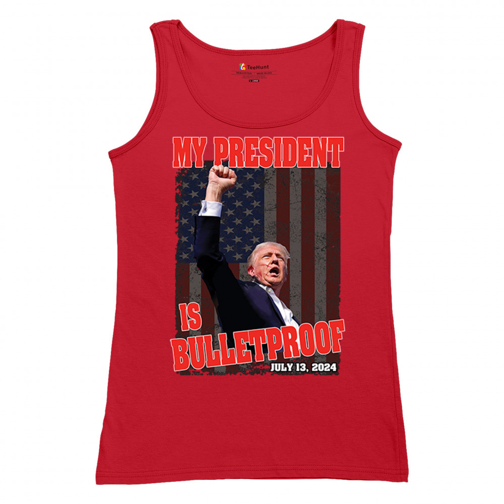 Support Trump with our "My President is Bulletproof" design, perfect for rallies and everyday wear. Show your patriotic pride and conservative values.