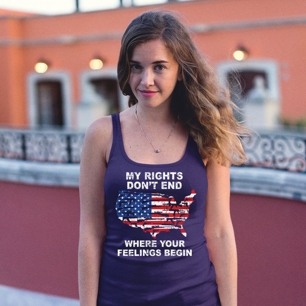 MY RIGHTS DON'T END WHERE YOUR FEELINGS BEGIN women's tank top usa pro guns navy blue