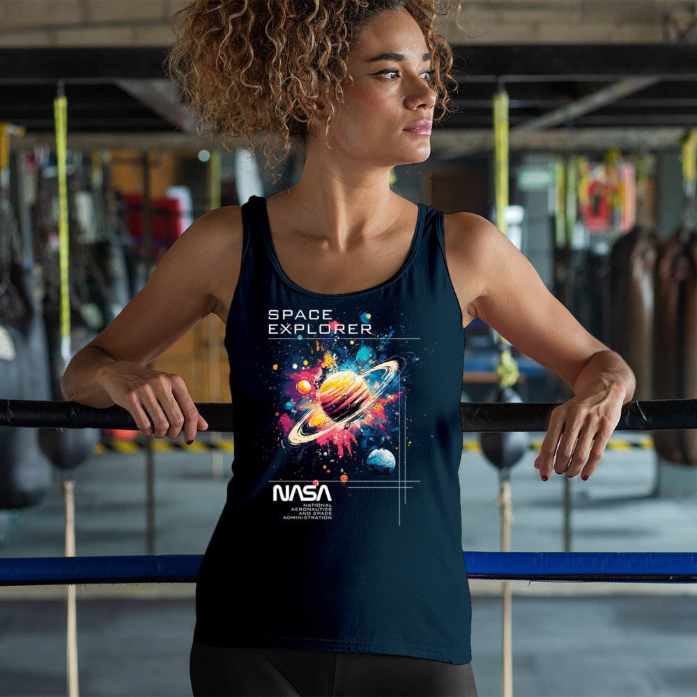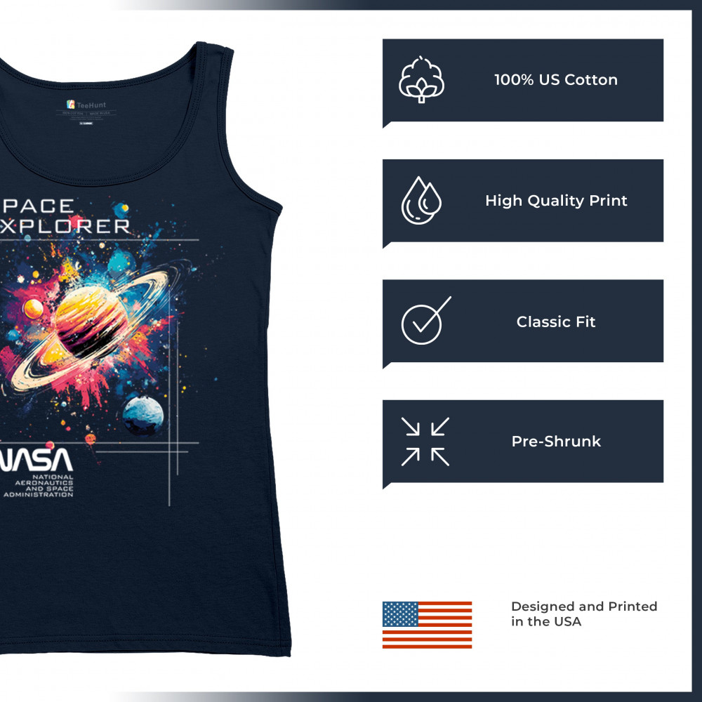 Bold and inspiring, this NASA Space Explorer design features Saturn in a cosmic paint splash with official branding. Ideal for fans of the Apollo program, moon landings, rocket launch history, and vintage NASA aesthetics. A great fit for space travel lovers, cosmic dreamers, and proud supporters of American exploration.