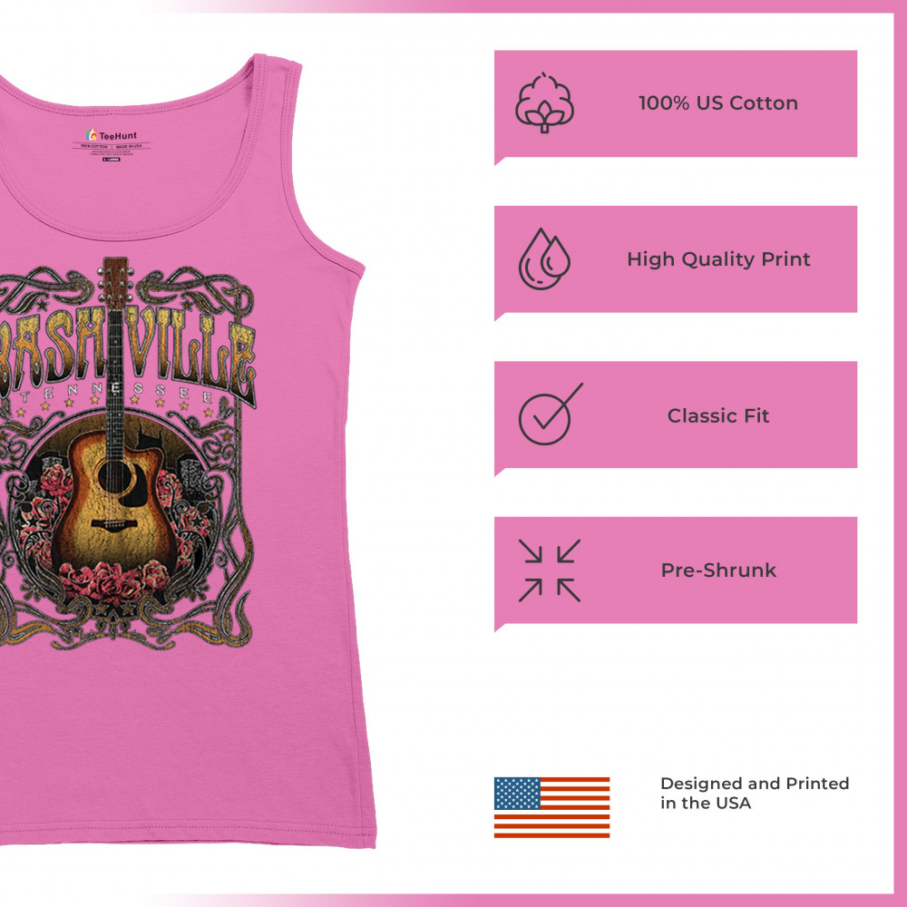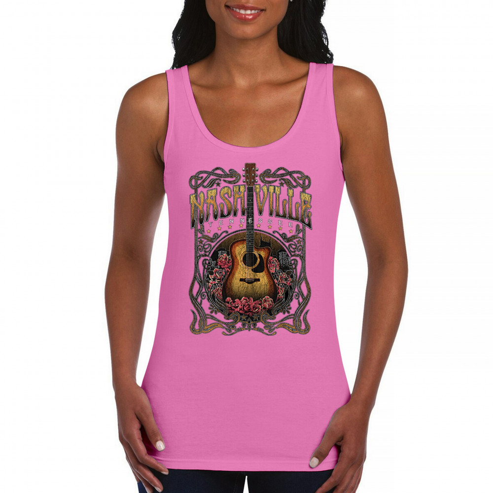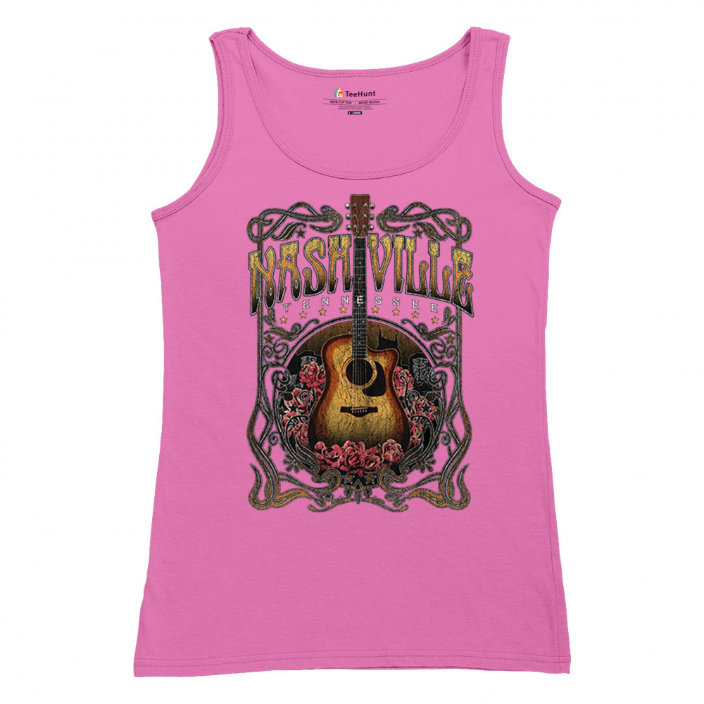 Vintage Nashville Tennessee design with rustic guitar and roses. Great for concerts, country music fans, road trips, and souvenir wear.