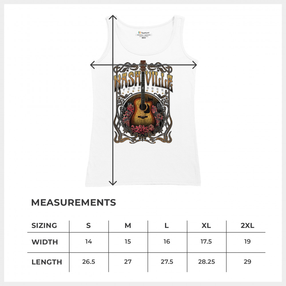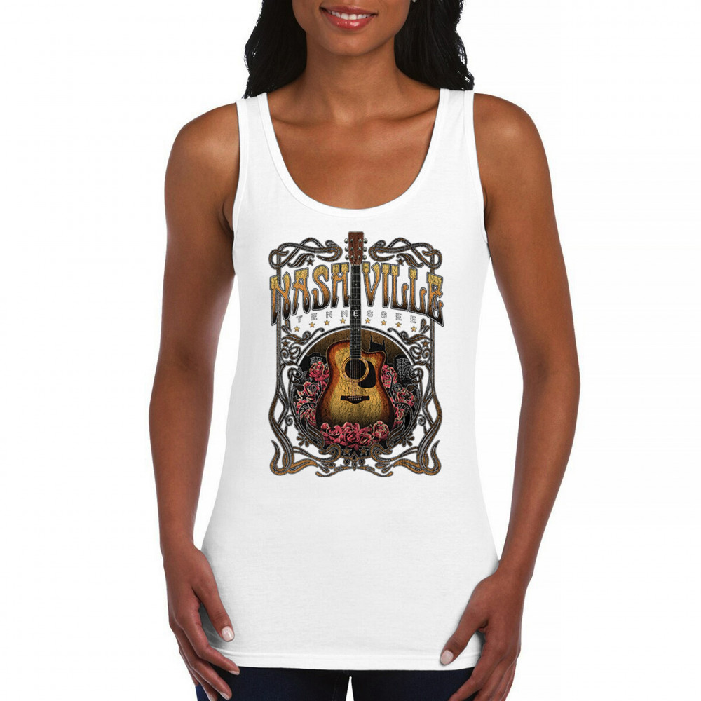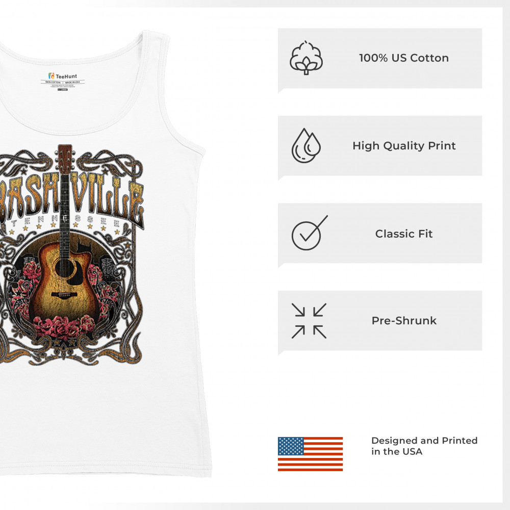 Vintage Nashville Tennessee design with rustic guitar and roses. Great for concerts, country music fans, road trips, and souvenir wear.