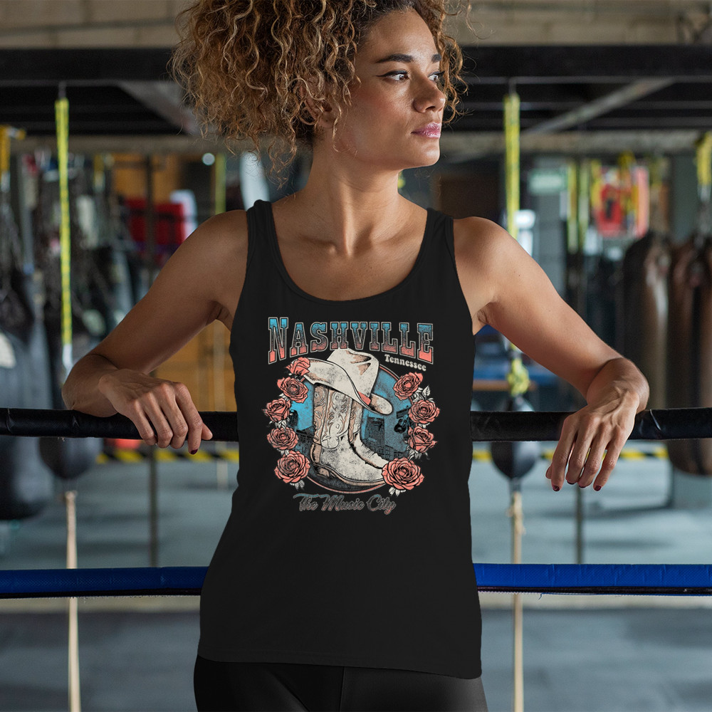 Show Nashville pride with a vintage cowgirl boots and hat design that blends country, western style, floral beauty, and southern grit.