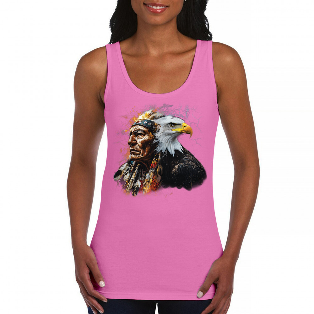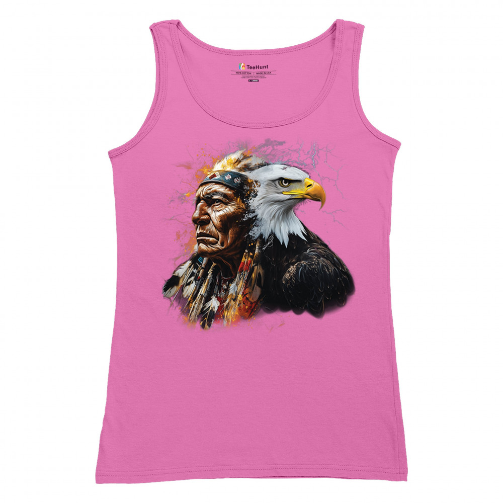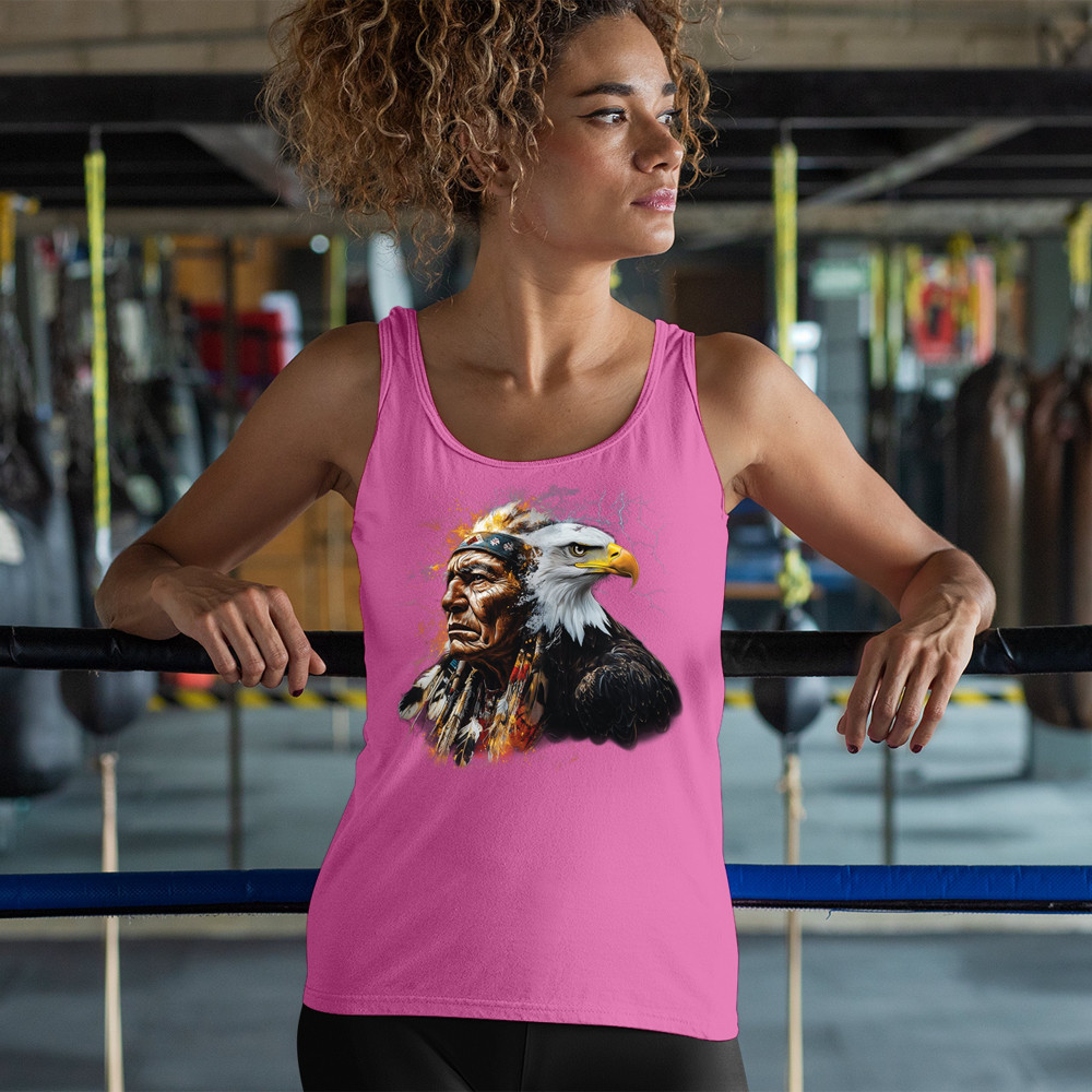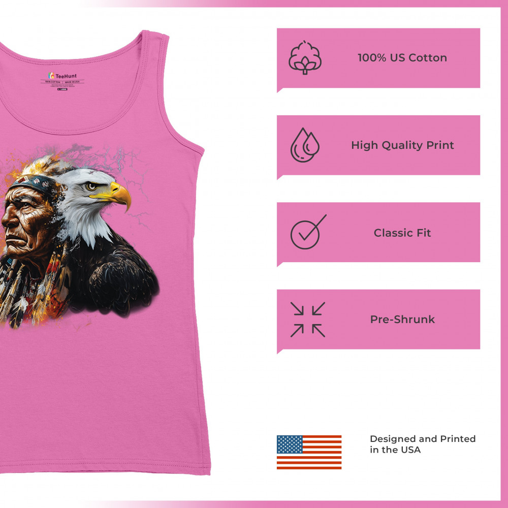 Bold tribal totem design with Native chief, eagle, lightning, and fire. A fierce blend of spirit, power, and cultural pride in one image.