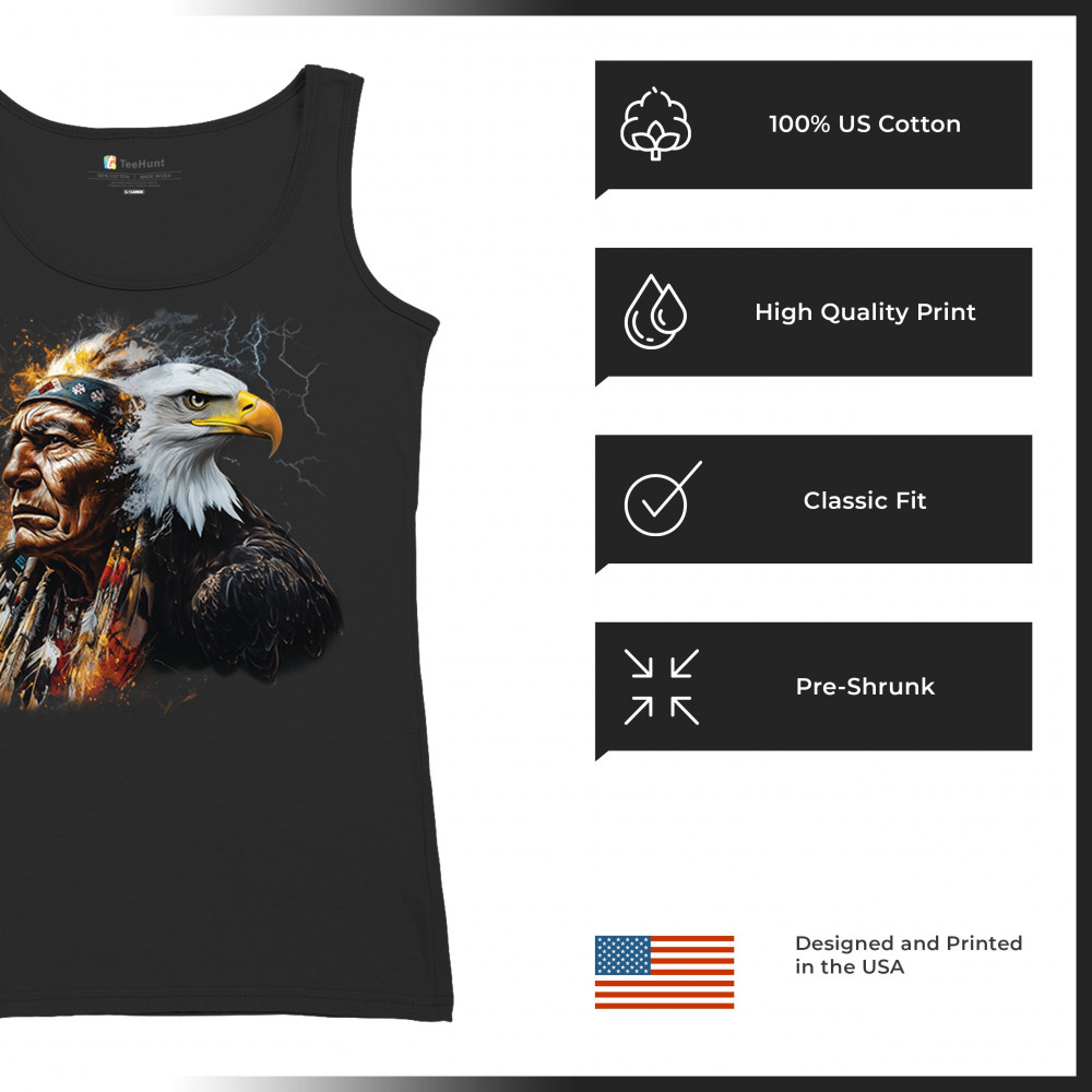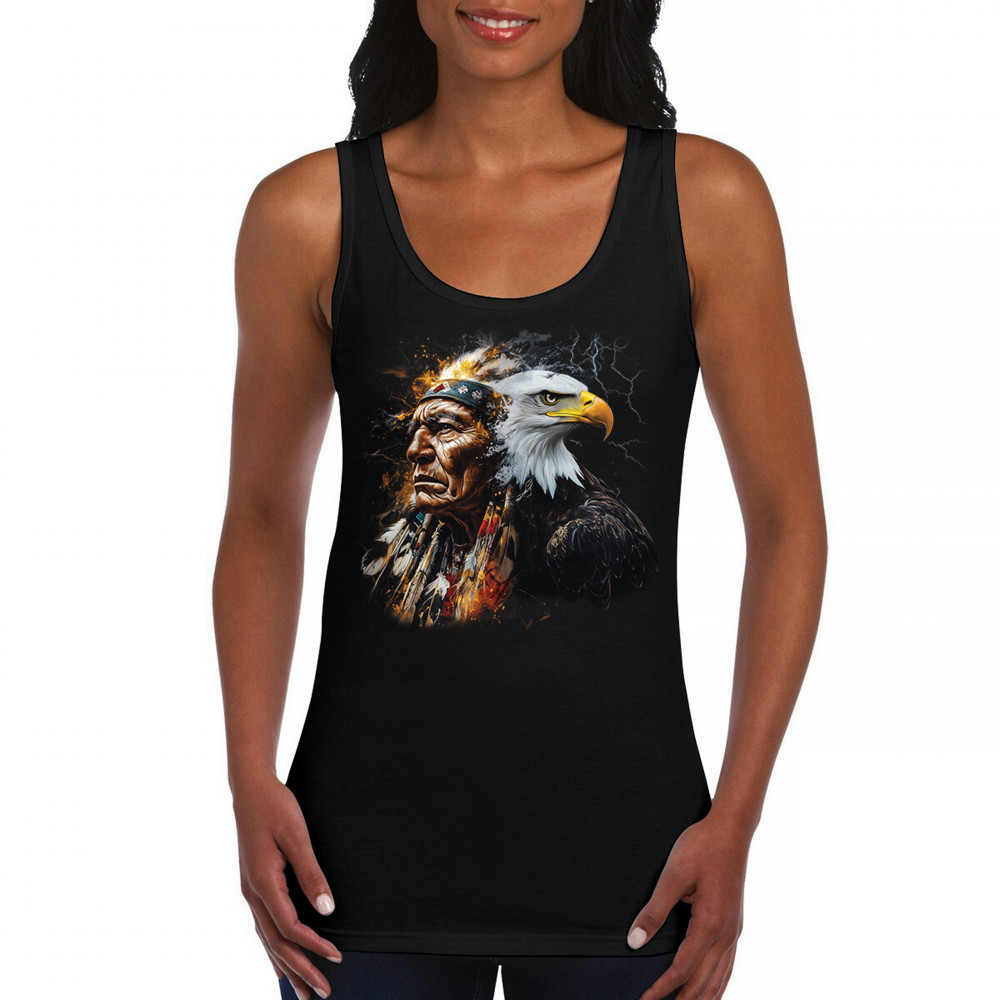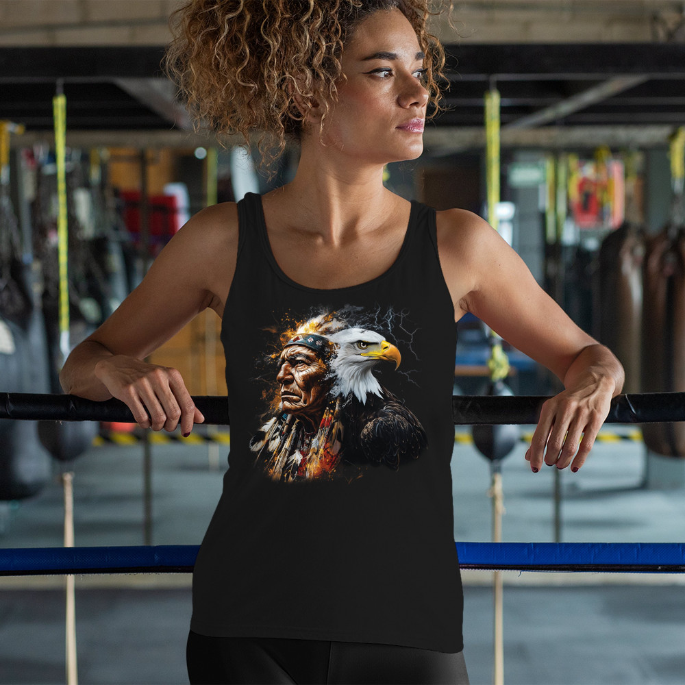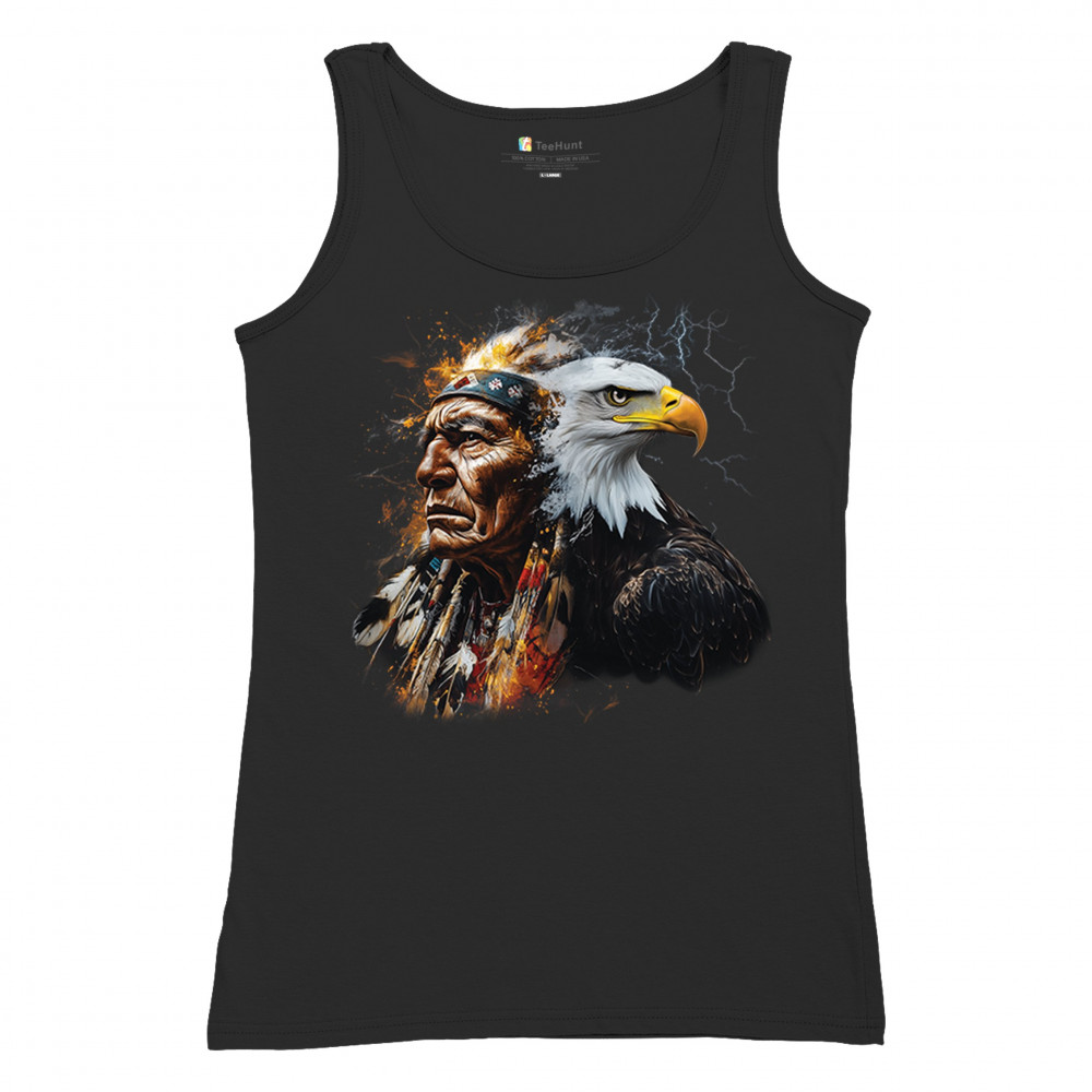 Bold tribal totem design with Native chief, eagle, lightning, and fire. A fierce blend of spirit, power, and cultural pride in one image.