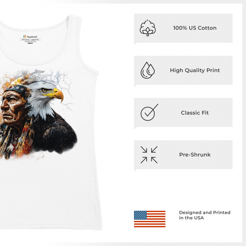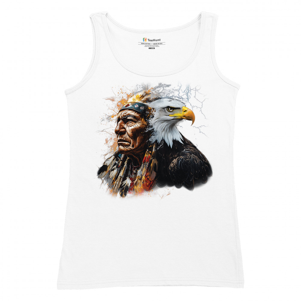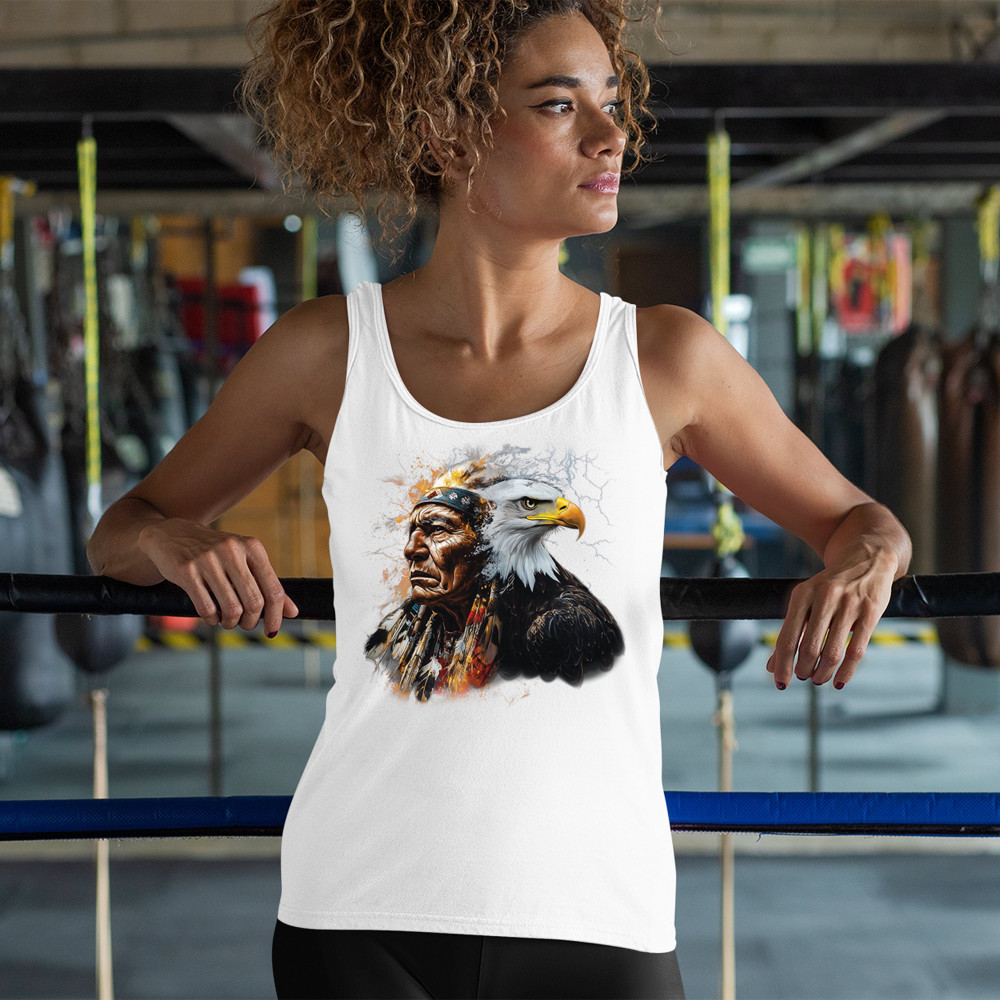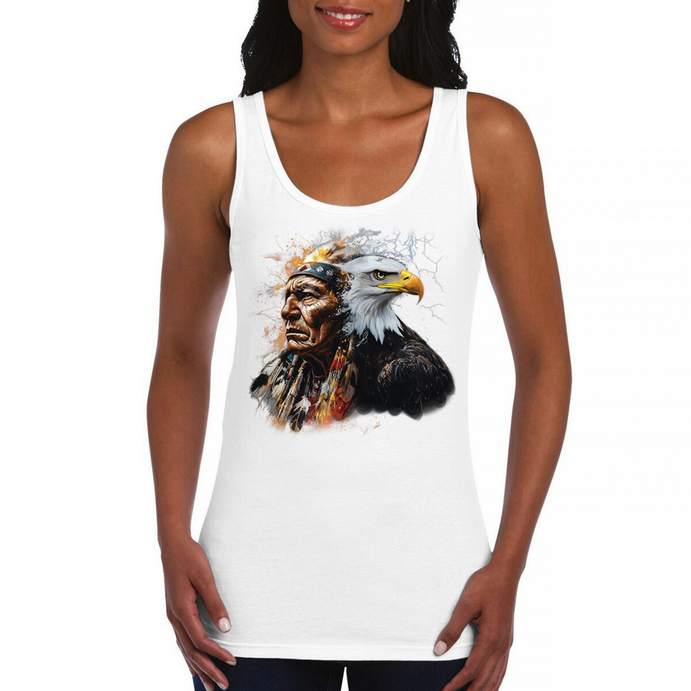 Bold tribal totem design with Native chief, eagle, lightning, and fire. A fierce blend of spirit, power, and cultural pride in one image.