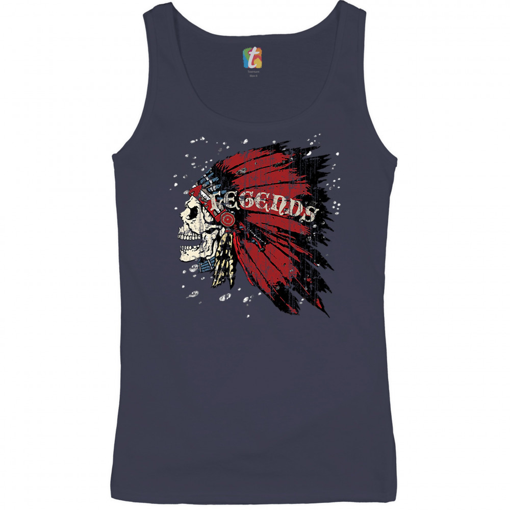 NATIVE AMERICAN LEGENDS women's tank top skull face war bonnet headdress navy blue