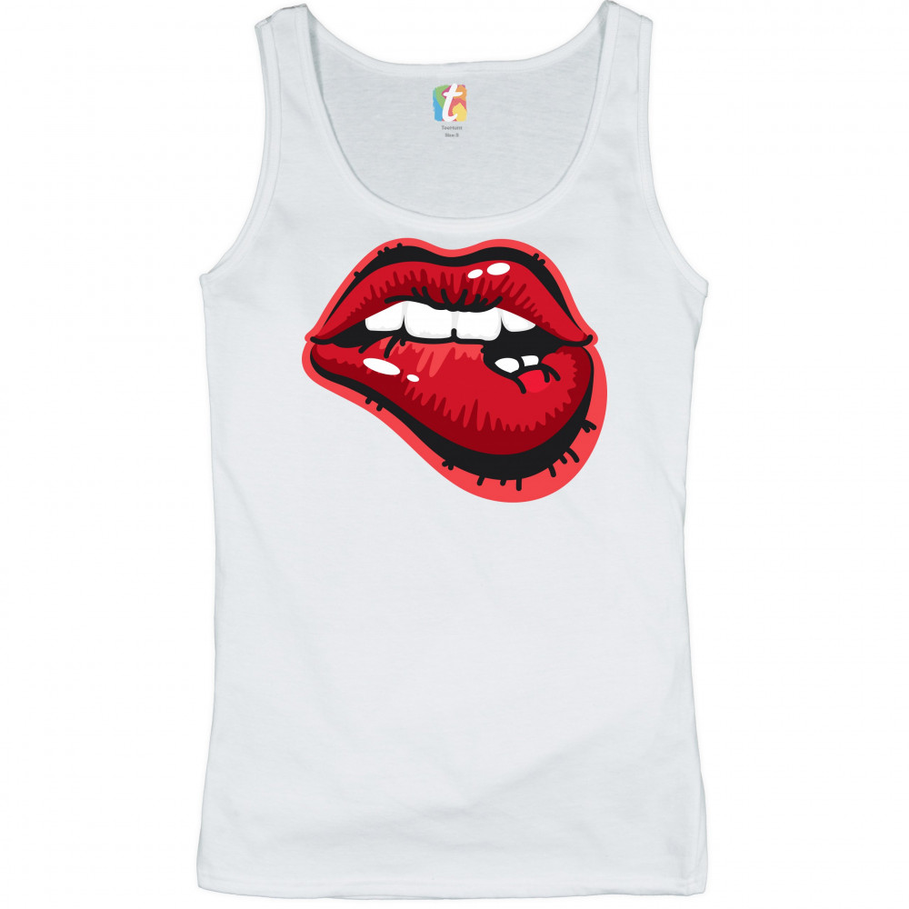 NAUGHTY BITING LIPS women's tank top hot luscious sexy red lips white