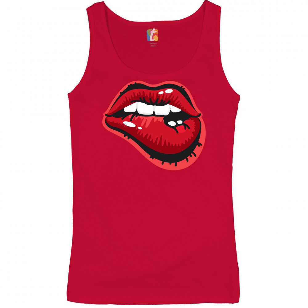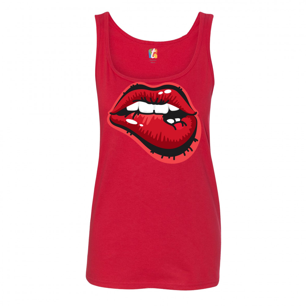 NAUGHTY BITING LIPS women's tank top hot luscious sexy red lips red