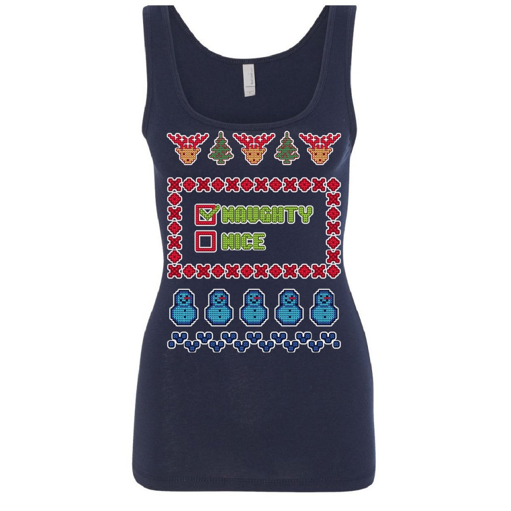 NAUGHTY OR NICE ugly sweater women's tank top christmas xmas holiday list top navy blue