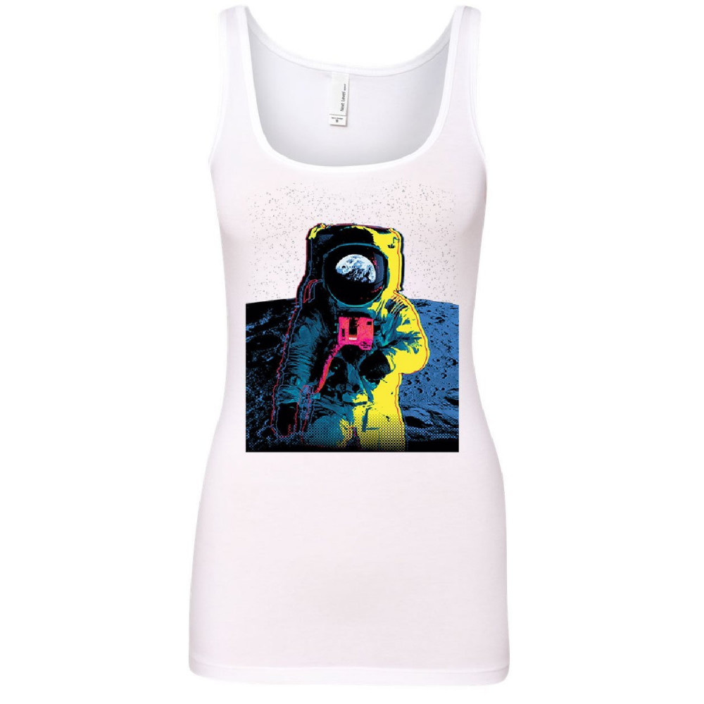 NEON ASTRONAUT women's tank top moon landing space travel universe earth top white