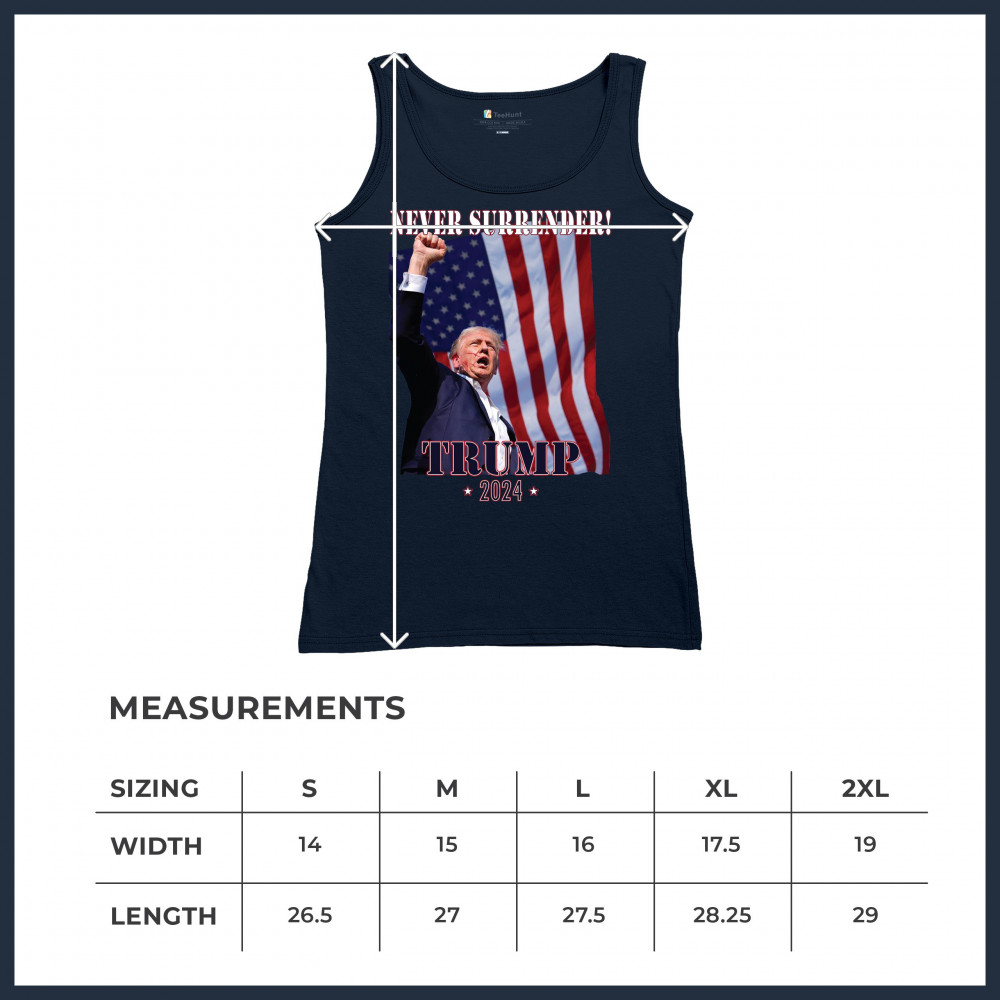 Celebrate your patriotic spirit and political stance with our "Never Surrender! Trump 2024" design. This powerful graphic showcases Donald Trump with a raised fist against the backdrop of the American flag, symbolizing resilience and determination. Ideal for rallies, events, and everyday wear, this design is crafted from premium materials for comfort and durability. Stand out and show your support for America's future with this striking and bold statement piece, perfect for any proud Trump supporter.