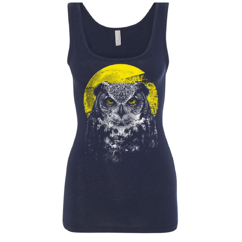NIGHT OWL women's tank top bird nature wildlife wilderness wisdom moon top navy blue
