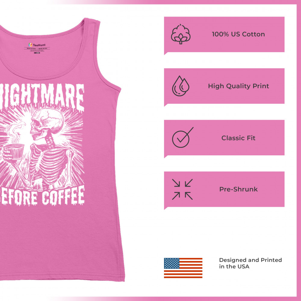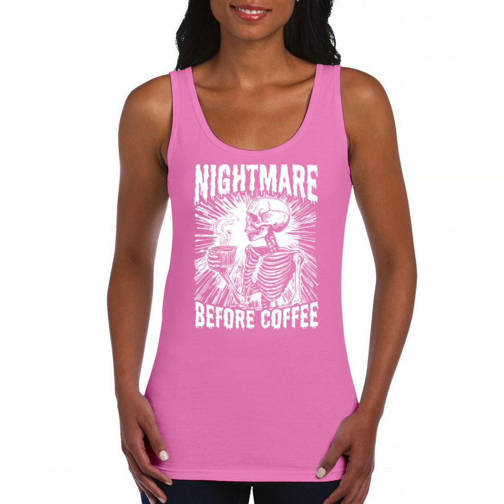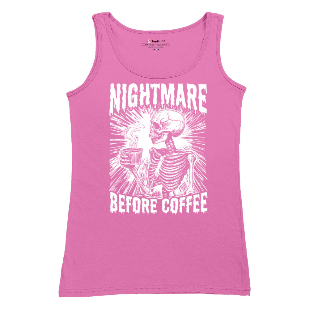 Show off your love for coffee with this quirky "Nightmare Before Coffee" skeleton design, blending humor and gothic style for caffeine lovers.
