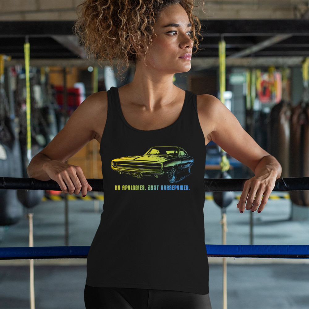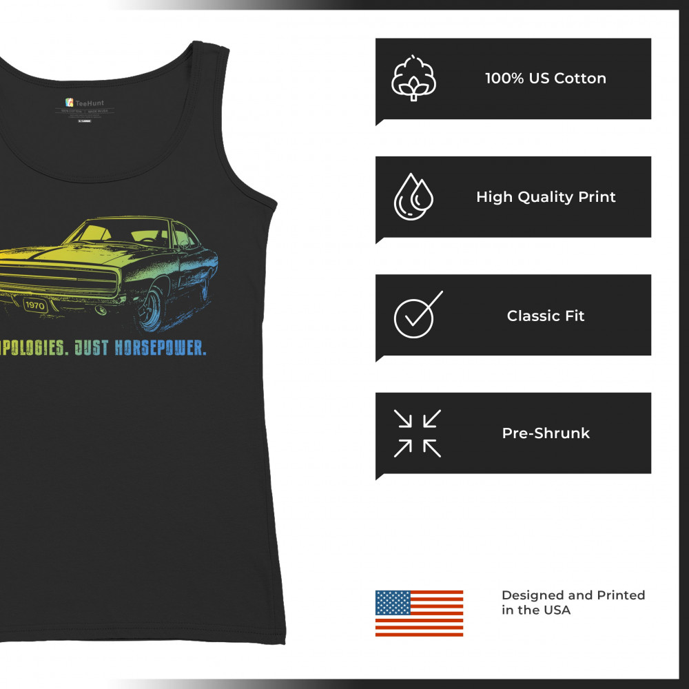 Bold 1970 muscle car design with gradient pop. No apologies, just horsepower—perfect for car shows, gearheads, and performance lovers.