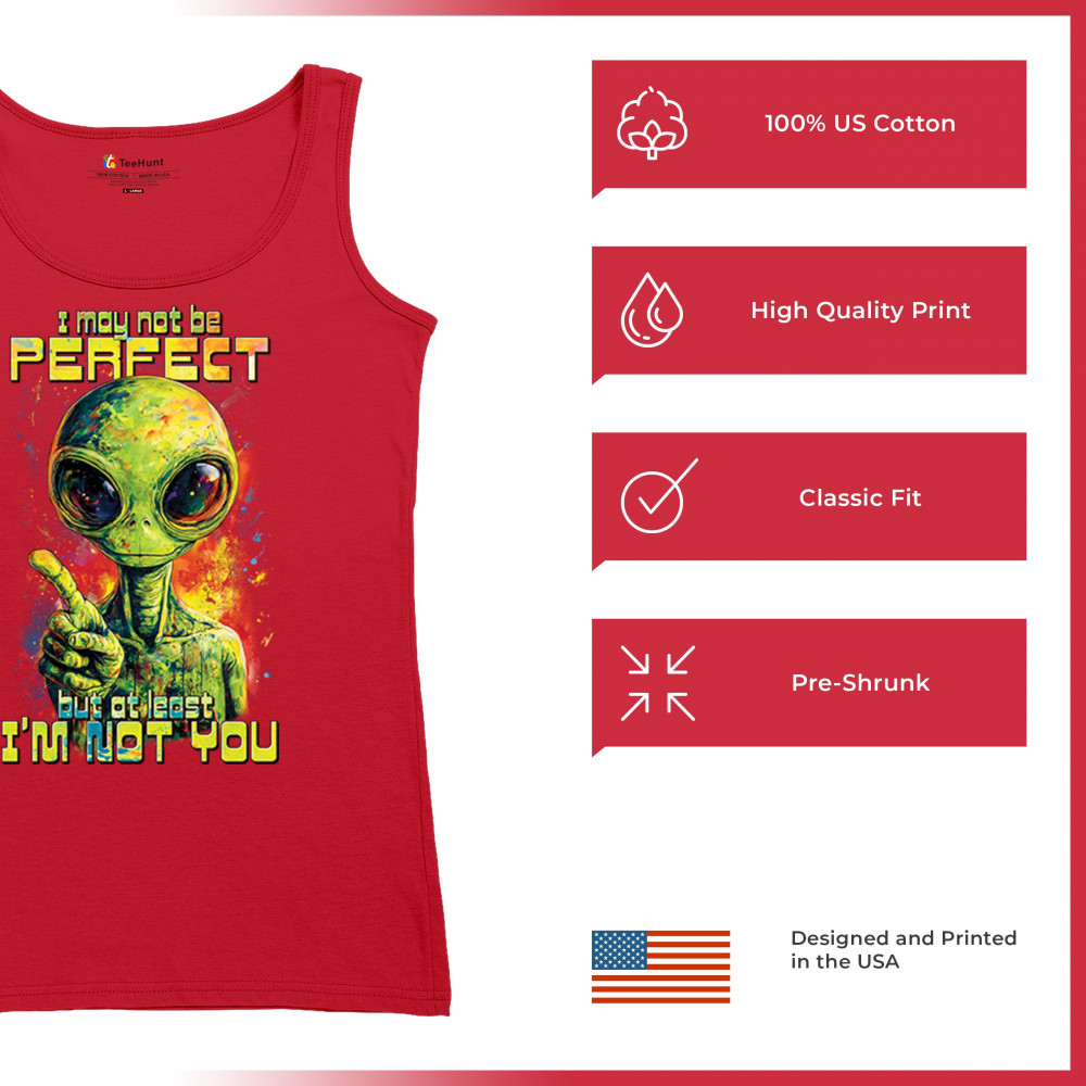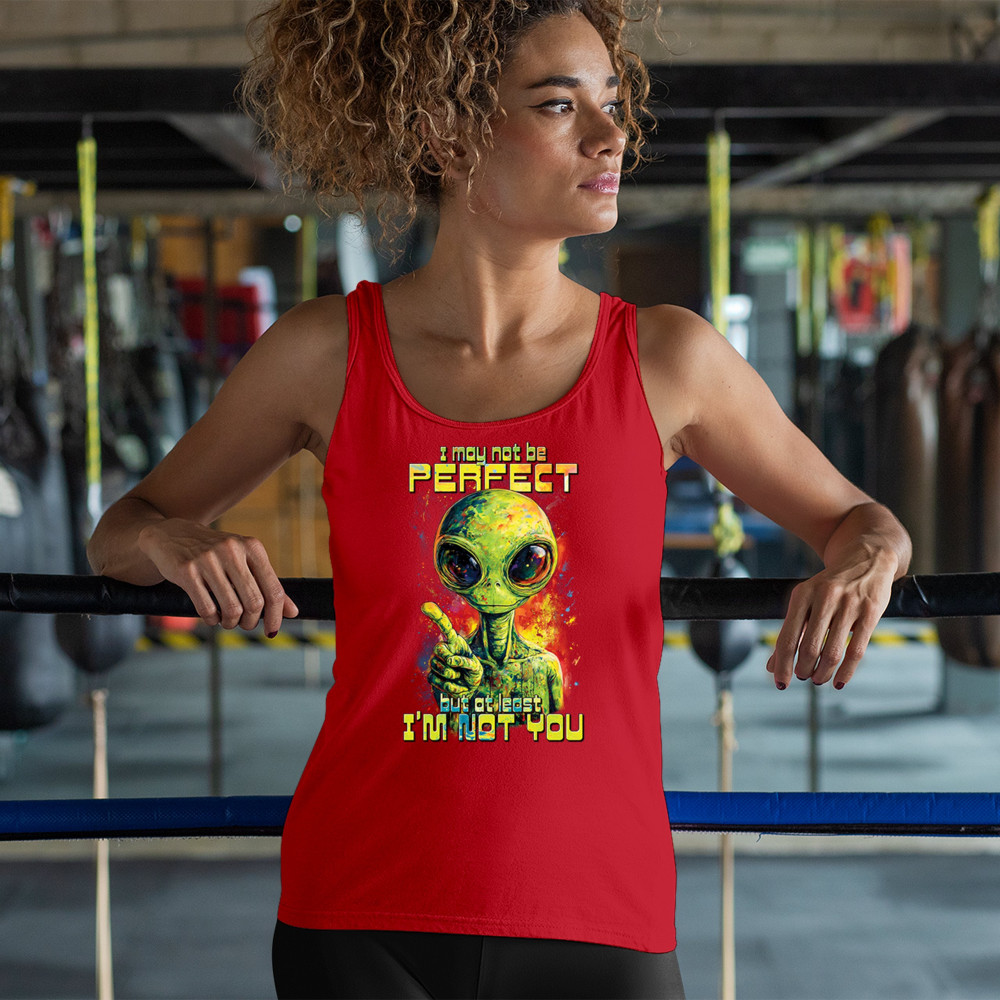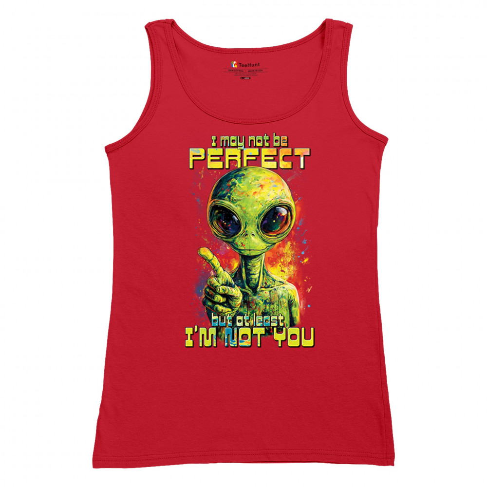This smug alien design delivers sharp sarcastic humor with vibrant cosmic flair. Featuring a big-eyed extraterrestrial and the quote “I may not be perfect, but at least I’m not you,†it’s perfect for sci-fi fans, alien lovers, jokesters, and oddballs alike. A bold, funny statement for parties, UFO events, and festivals.