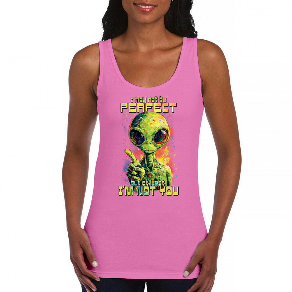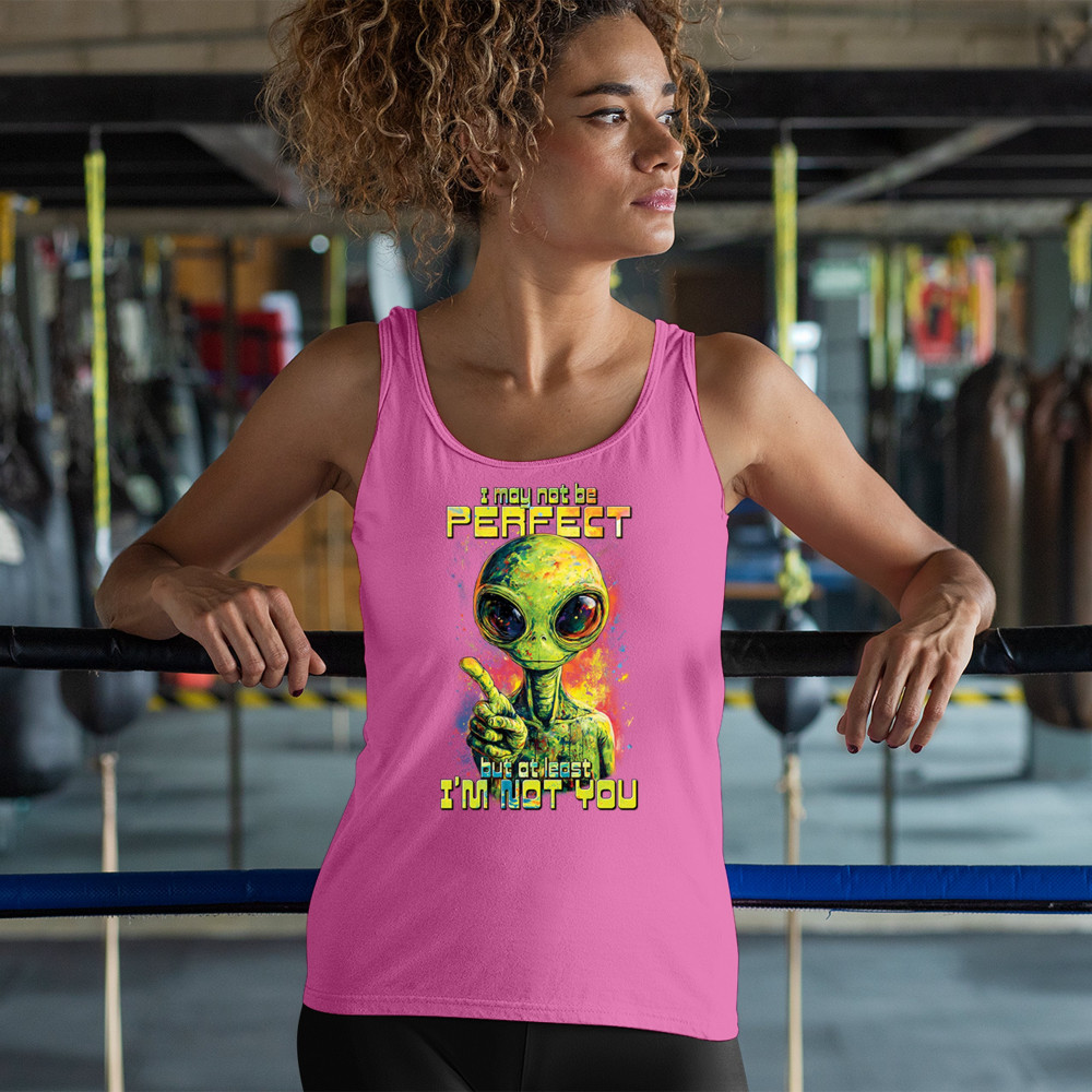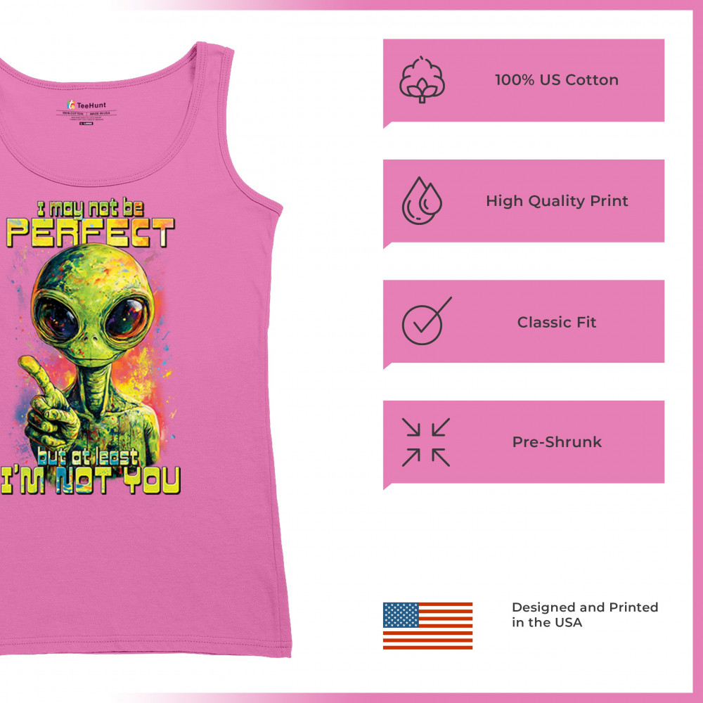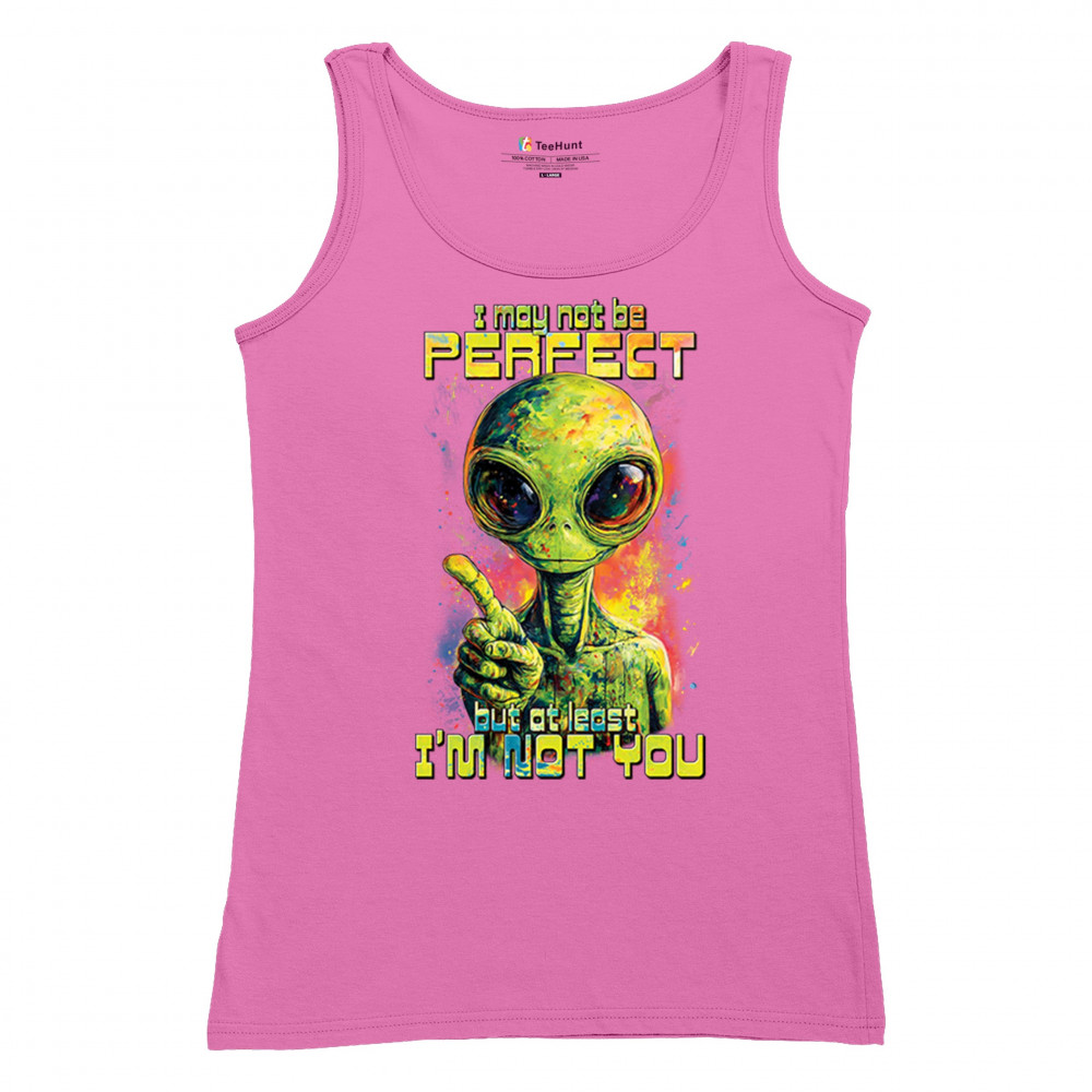This smug alien design delivers sharp sarcastic humor with vibrant cosmic flair. Featuring a big-eyed extraterrestrial and the quote “I may not be perfect, but at least I’m not you,†it’s perfect for sci-fi fans, alien lovers, jokesters, and oddballs alike. A bold, funny statement for parties, UFO events, and festivals.
