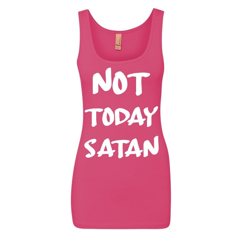 NOT TODAY SATAN women's tank top religious funny jesus religion faith pink